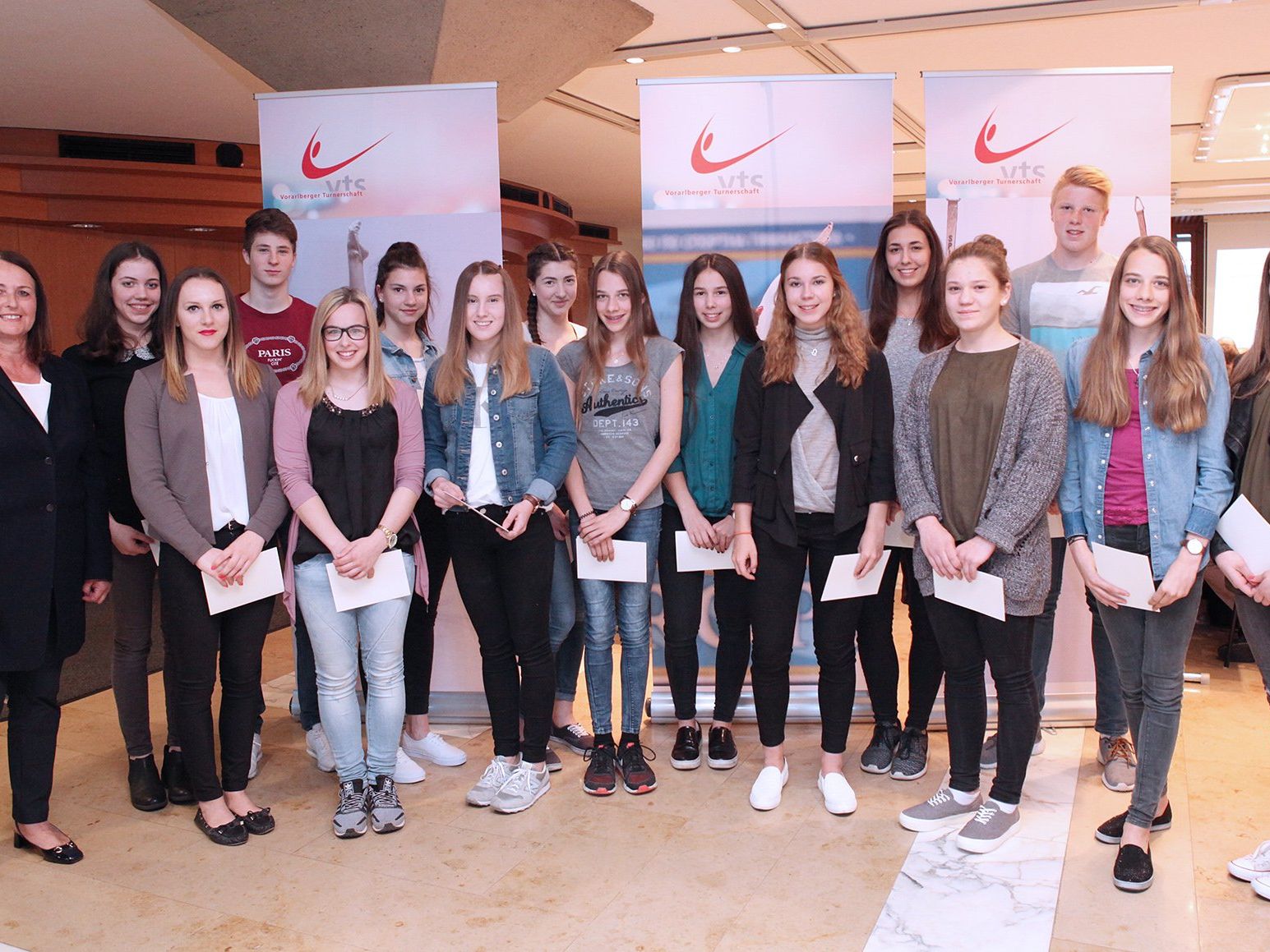 Interesse am Vorarlberger Turnsport zeigte beim Verbandstag auch die heimische Sport-Prominenz mit Landesräten Bernadette Mennel, Sportamtsleiter Michael Zangerl, Sportservice Geschäftsführer Sebastian Mannhart, Gymnaestrada-Präsidentin Marialuise Hinterauer und Lustenaus Bürgermeister Kurt Fischer.