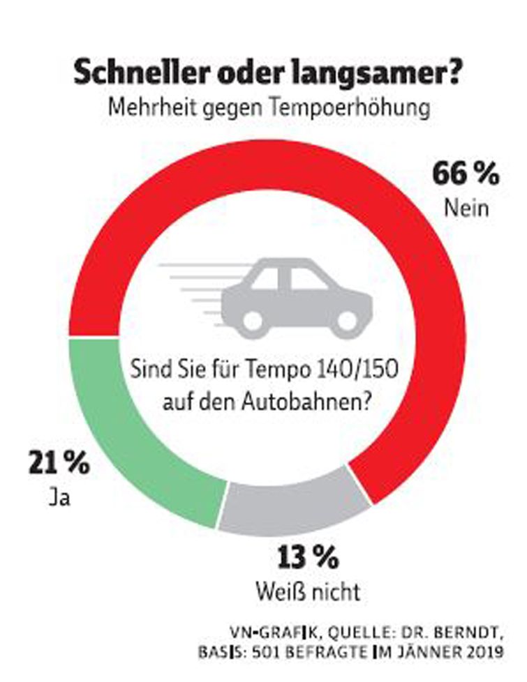 Eine deutliche Mehrheit der Vorarlberger erteilt Plänen des Verkehrsministeriums, das bundesweit mehrere Tempo-140-Strecken testet, eine Absage. Das geht aus einer repräsentativen Umfrage des Meinungsforschungsinstituts Dr. Berndt im Auftrag der VN hervor.