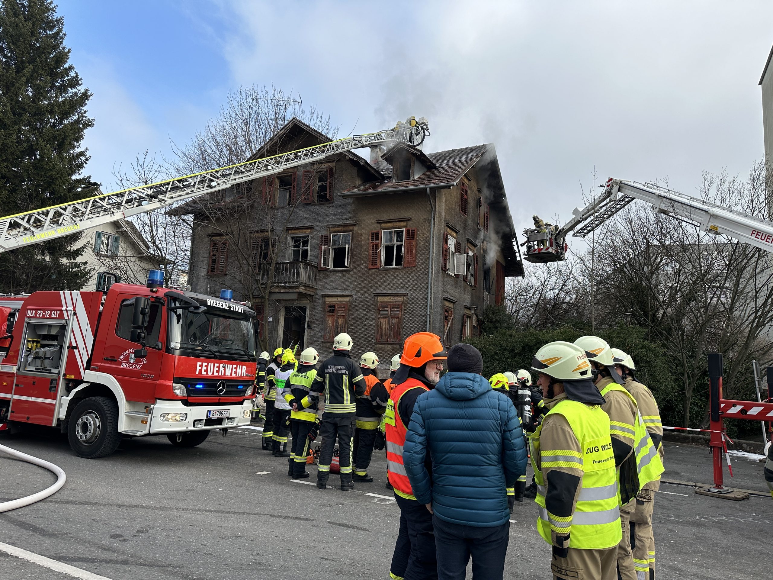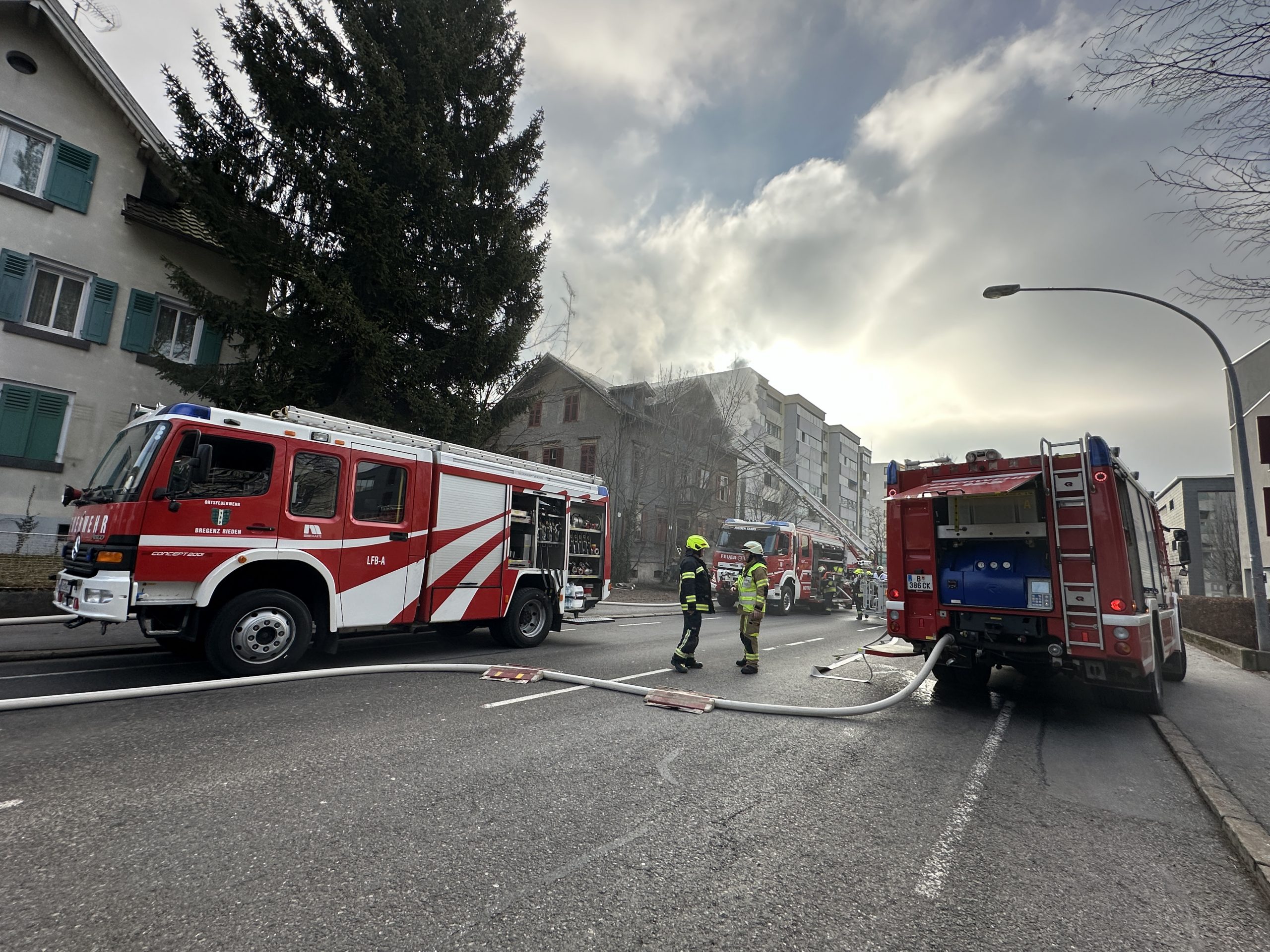 Aufgrund des Feuerwehreinsatzes kommt es zu Straßensperren bei der Arlbergstraße. Örtliche Umleitungen sind eingerichtet. Im Einsatz waren alle vier Bregenzer Feuerwehren und Feuerwehr Wolfurt mit insgesamt 120 Einsatzkräften.