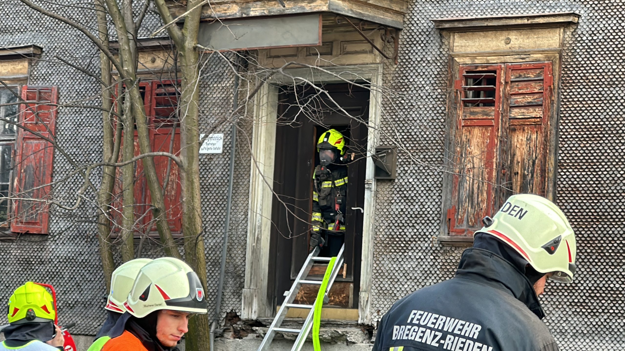 Beim Brandobjekt handelt es sich um den "Riederhof", ein seit rund 20 Jahren unbewohntes Haus. Das Feuer brach im Obergeschoß des Gebäudes aus. Beim Eintreffen der Feuerwehren stand das Stockwerk bereits in Vollbrand. Verletzt wurde niemand.