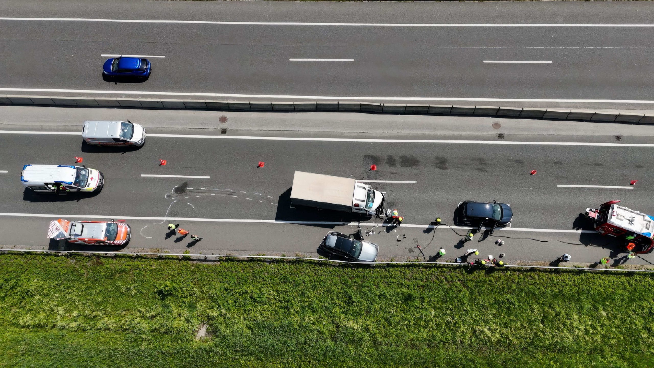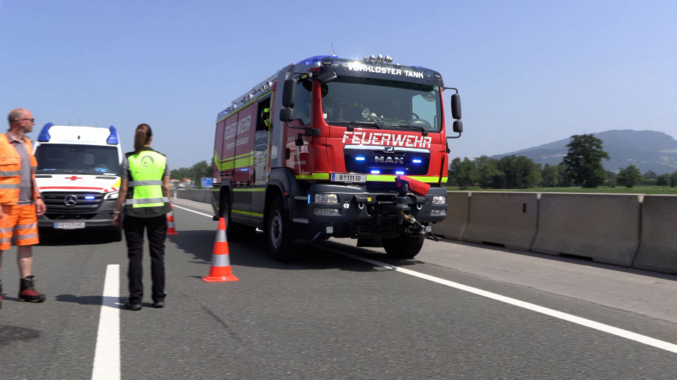 E-Call schlägt automatisch Alarm: Unfall bei Wolfurt auf der A14 mit drei Verletzten