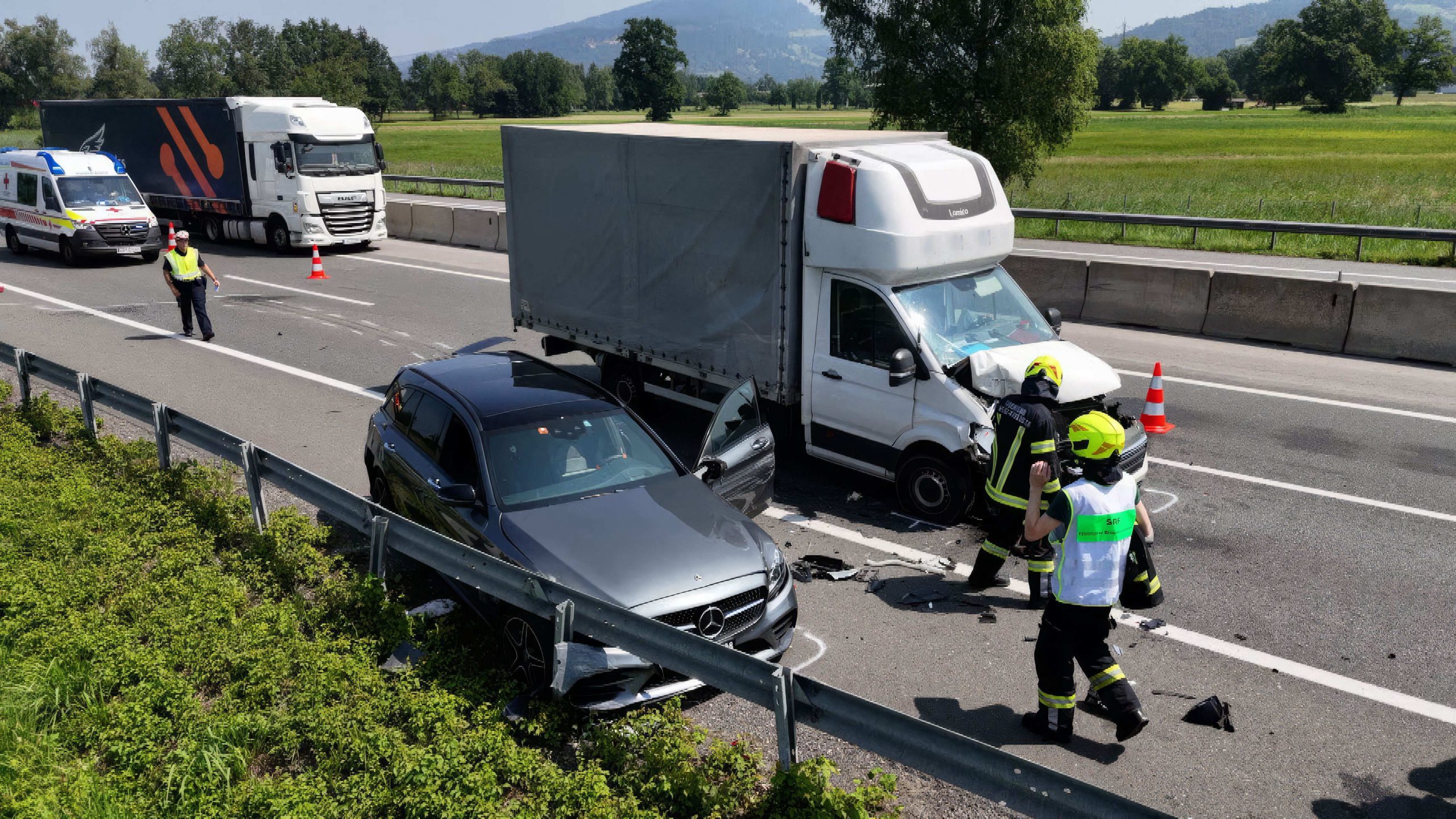 Am Donnerstag kam es gegen 11:00 Uhr auf der A14 in Fahrtrichtung Tirol, auf Höhe Dornbirn Nord, zu einem Auffahrunfall. Grund für das stockende Verkehrsaufkommen war eine Wanderbaustelle. Ein rumänischer Kleintransporterfahrer übersah aus bisher ungeklärter Ursache das Stauende und fuhr nahezu ungebremst auf einen vor ihm stehenden Pkw aus Liechtenstein auf.