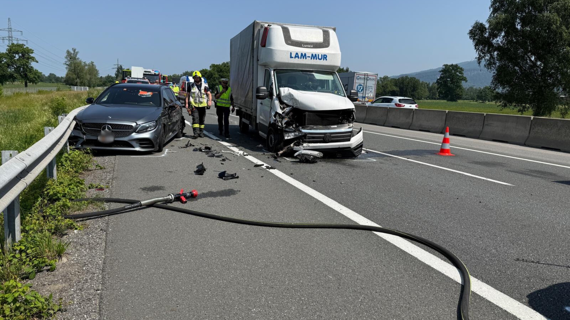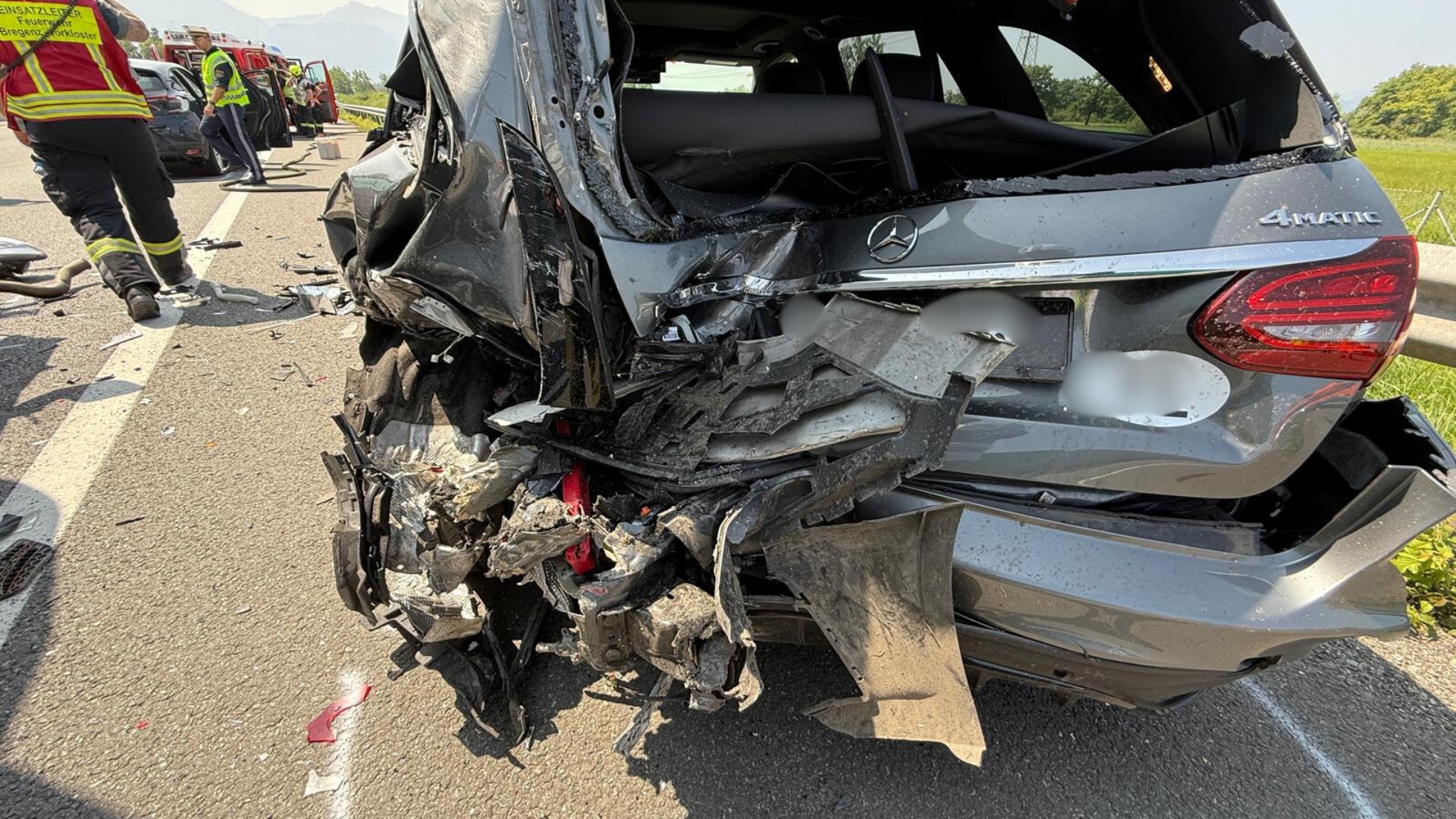 Durch die Wucht des Aufpralls wurde der Wagen aus Liechtenstein auf ein weiteres, davor stehendes Fahrzeug aus Deutschland geschoben. In der Folge wurde das Fahrzeug aus Liechtenstein zudem zur Seite geschleudert und prallte gegen die Mittelleitschiene.