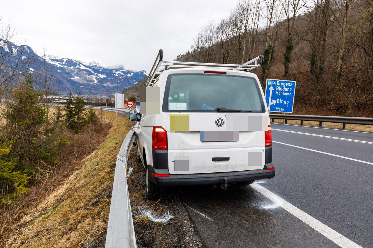 Am 12. Februar 2025 gegen 10:25 Uhr ereignete sich auf der Arlbergschnellstraße (S16) auf Höhe Kilometer 59,5 ein Verkehrsunfall mit Verletzung. Ein 19-jähriger Kleinbus-Lenker und sein Beifahrer waren in Fahrtrichtung Deutschland unterwegs, als er aufgrund von Sekundenschlaf nach rechts von der Fahrbahn abkam. Dabei kollidierte das Fahrzeug mit einem Straßenleitpflock und einer Betonleitwand. In weiterer Folge wurde der Laster nach links geschleudert, wobei er einen entgegenkommenden Pkw im hinteren Bereich leicht streifte und folglich nach einer weiteren Kollision gegen die Außenleitschiene stehen blieb.