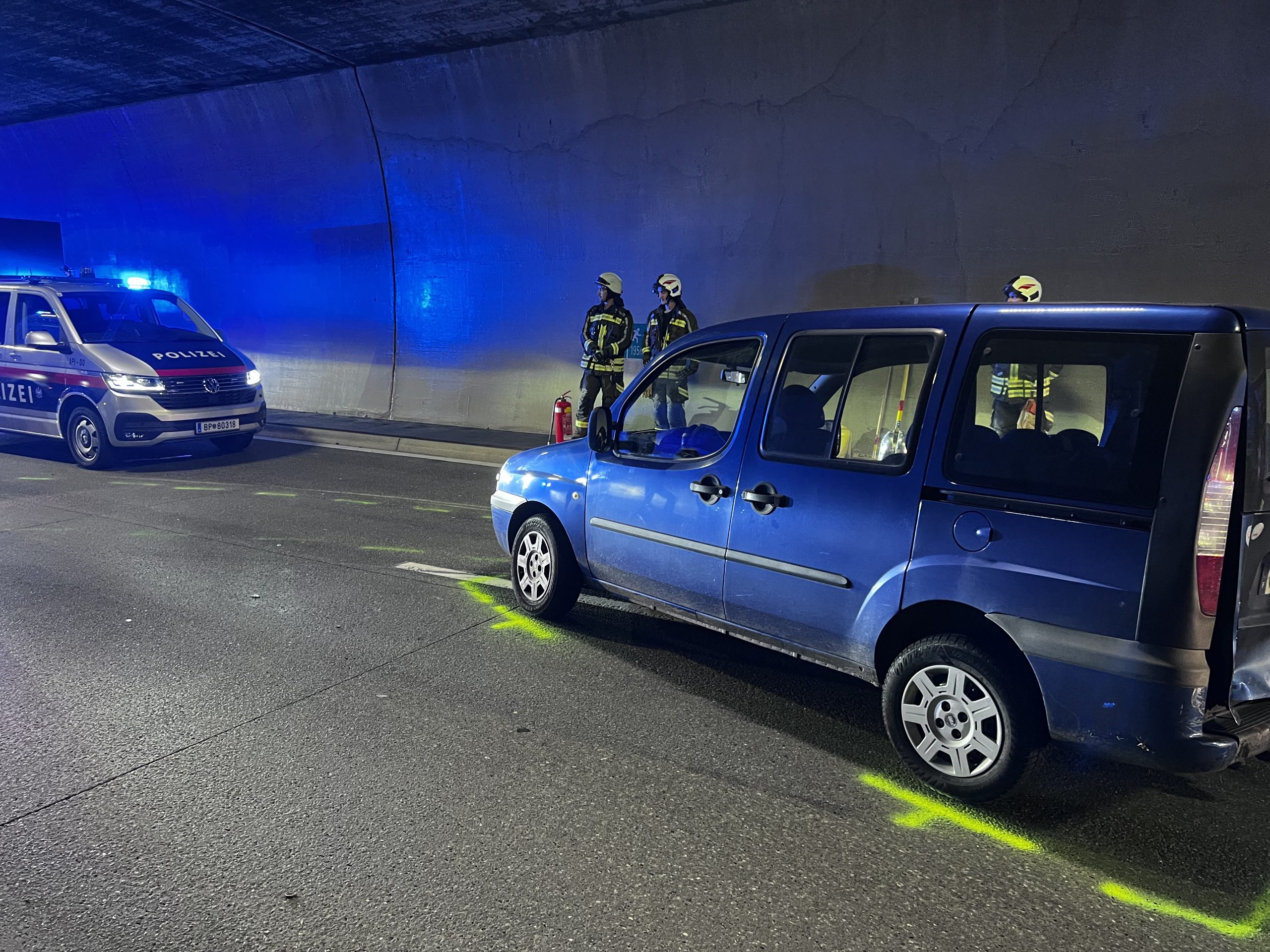 Am Sonntag um 16:15 Uhr fuhr ein 53-jähriger Mann mit seinem Pkw und hinter ihm eine 57-jährige Frau mit ihrem Pkw im Pfändertunnel auf der rechten Fahrspur in Richtung Deutschland. Aus bislang unbekannter Ursache kam es zu einer Kollision beider Fahrzeuge.