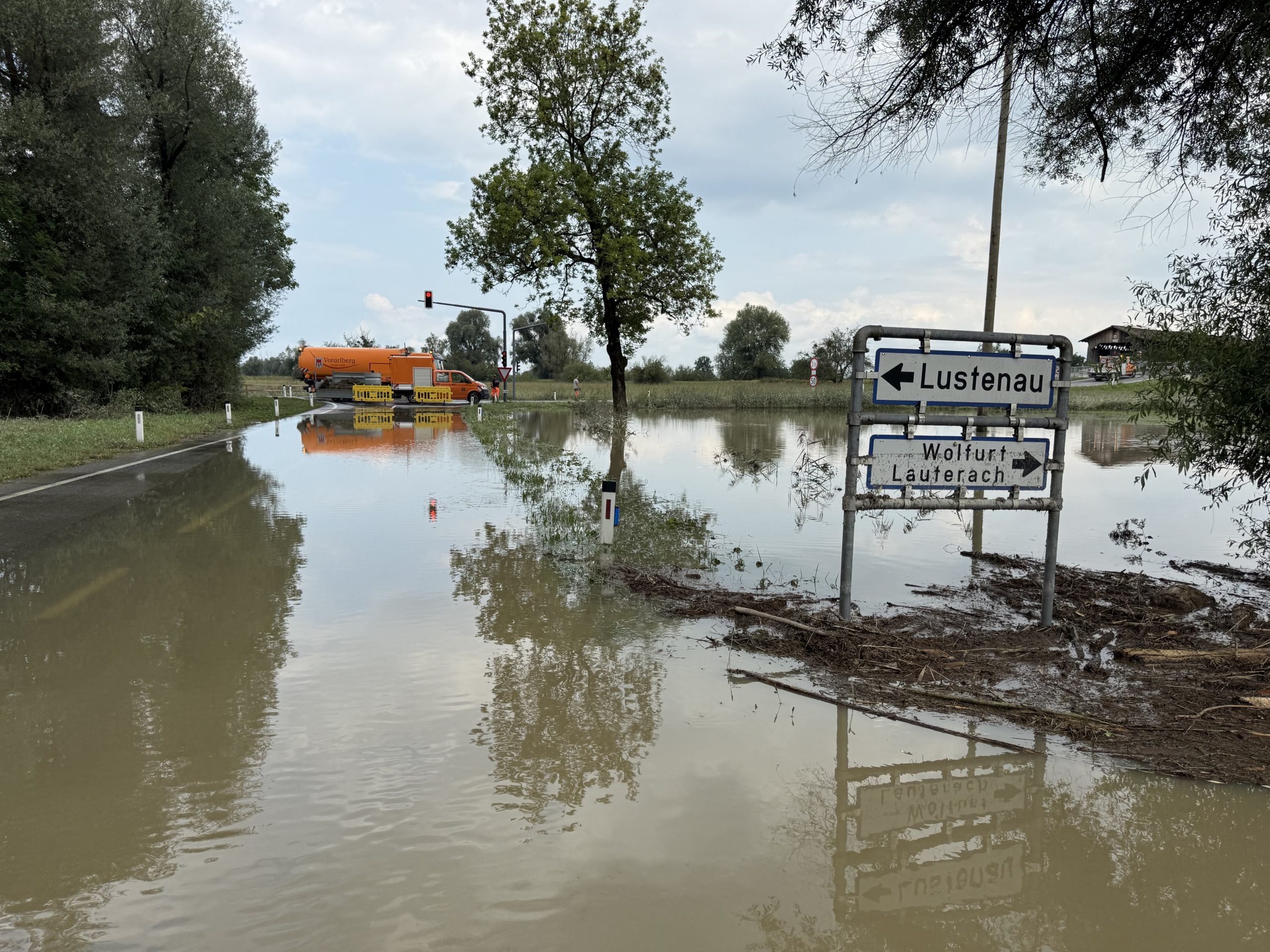 Mehrere Bäche und Flüsse in Vorarlberg führten vorübergehend Hochwasser. Wie die Hydrografie meldet, überschritt die Dornbirner Ach bei der Messstelle Lauterach kurzzeitig sogar den Pegel eines zehnjährlichen Hochwassers. Die Lage entspannte sich jedoch in den frühen Morgenstunden wieder.
