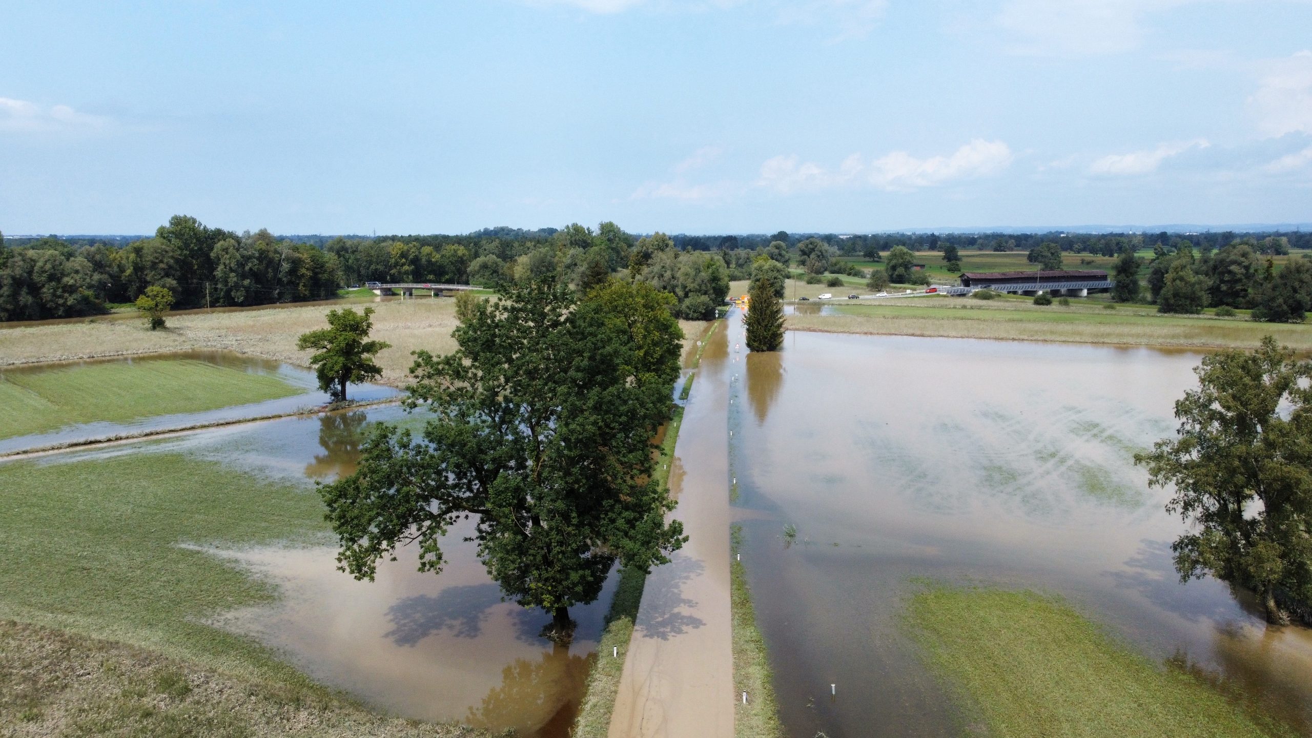 Zwar hatten die Niederschläge Freitagfrüh wieder aufgehört, doch standen in und um Dornbirn zunächst mehrere Straßenverbindungen unter Wasser. Die Sperre der Rheintalautobahn (A14) zwischen Dornbirn-West und Dornbirn-Süd wurde am Vormittag aufgehoben. Nach wie vor nicht befahrbar waren zu Mittag etwa die Straßen durch das Ried (Senderstraße/L41, Höchster Straße/L42).
