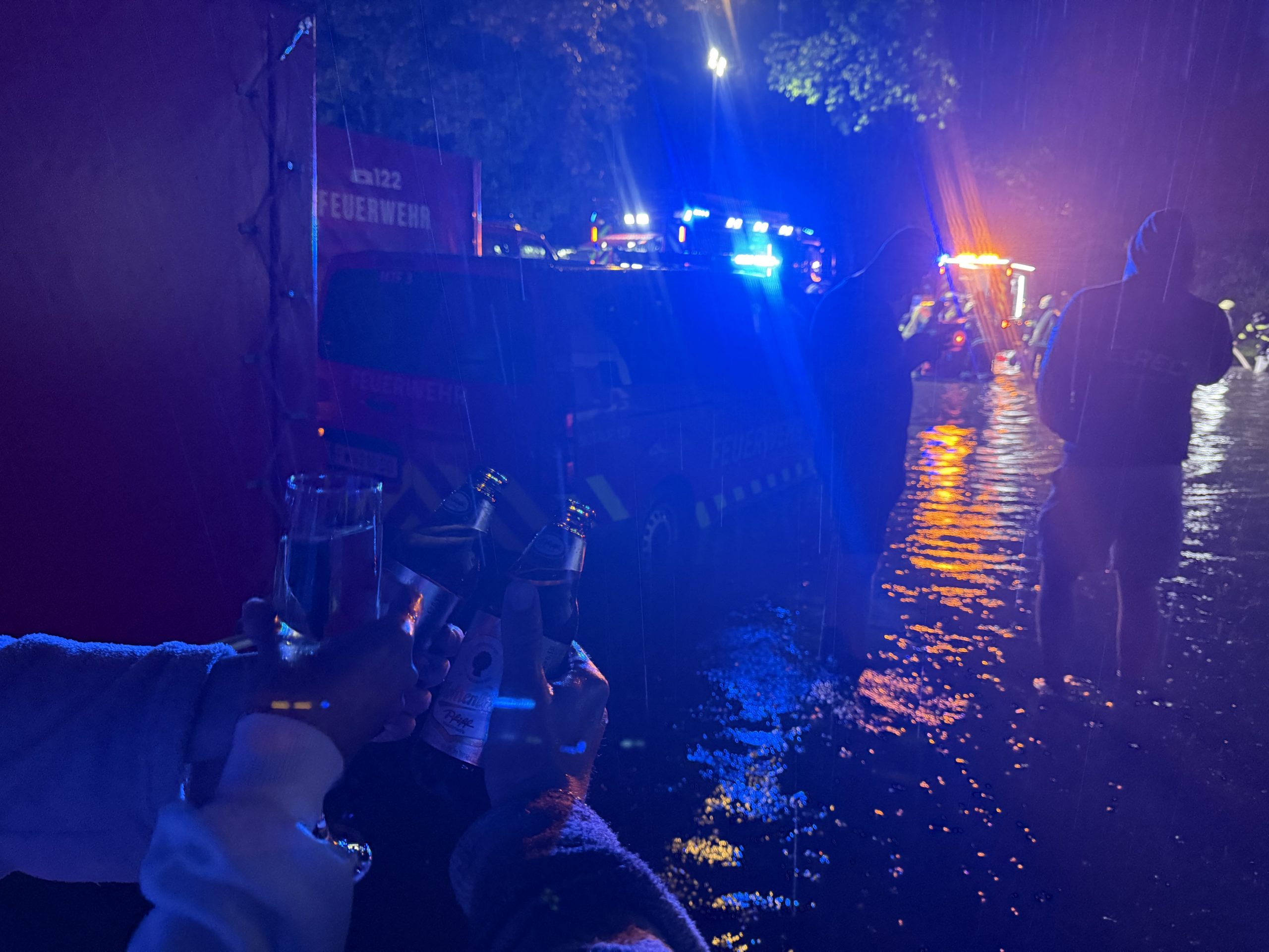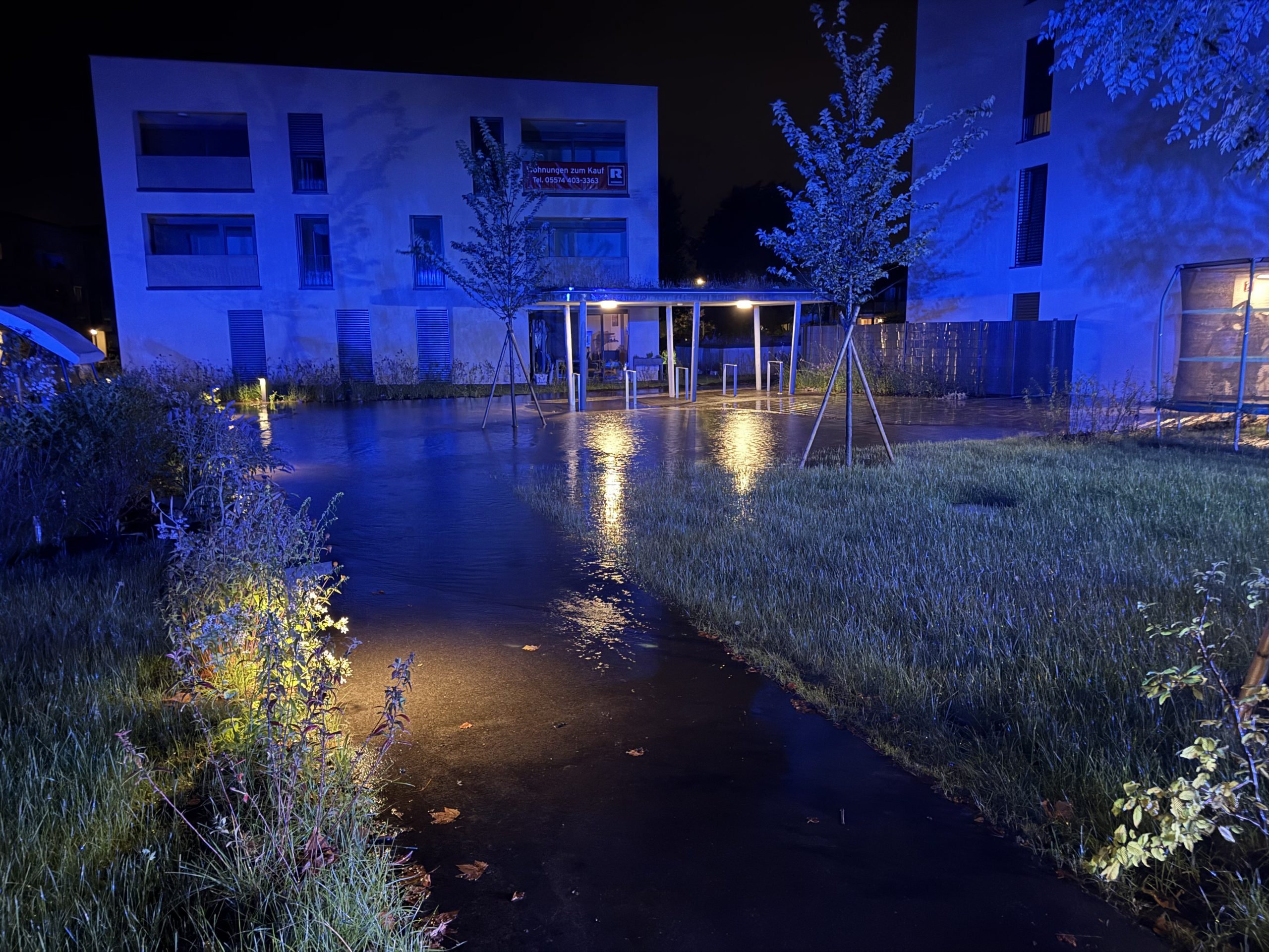Björg alarmierte sofort die Feuerwehr, die anschließend zum Einsatz ausrückte. Persönlich sei sie nicht betroffen, betont sie – abgesehen von ihrer Tiefgarage und dem Keller, die durch die Feuerwehr ausgepumpt werden mussten.