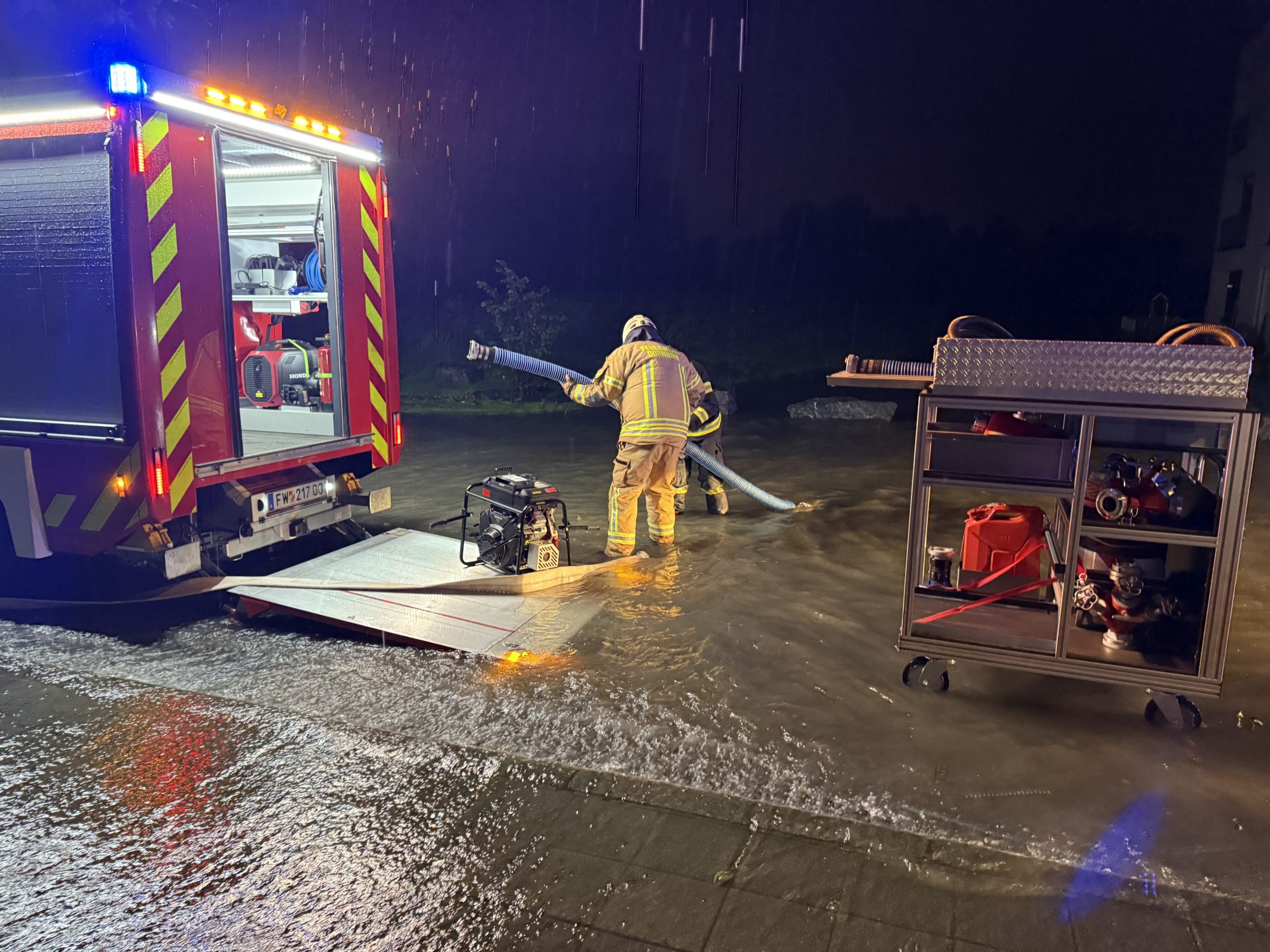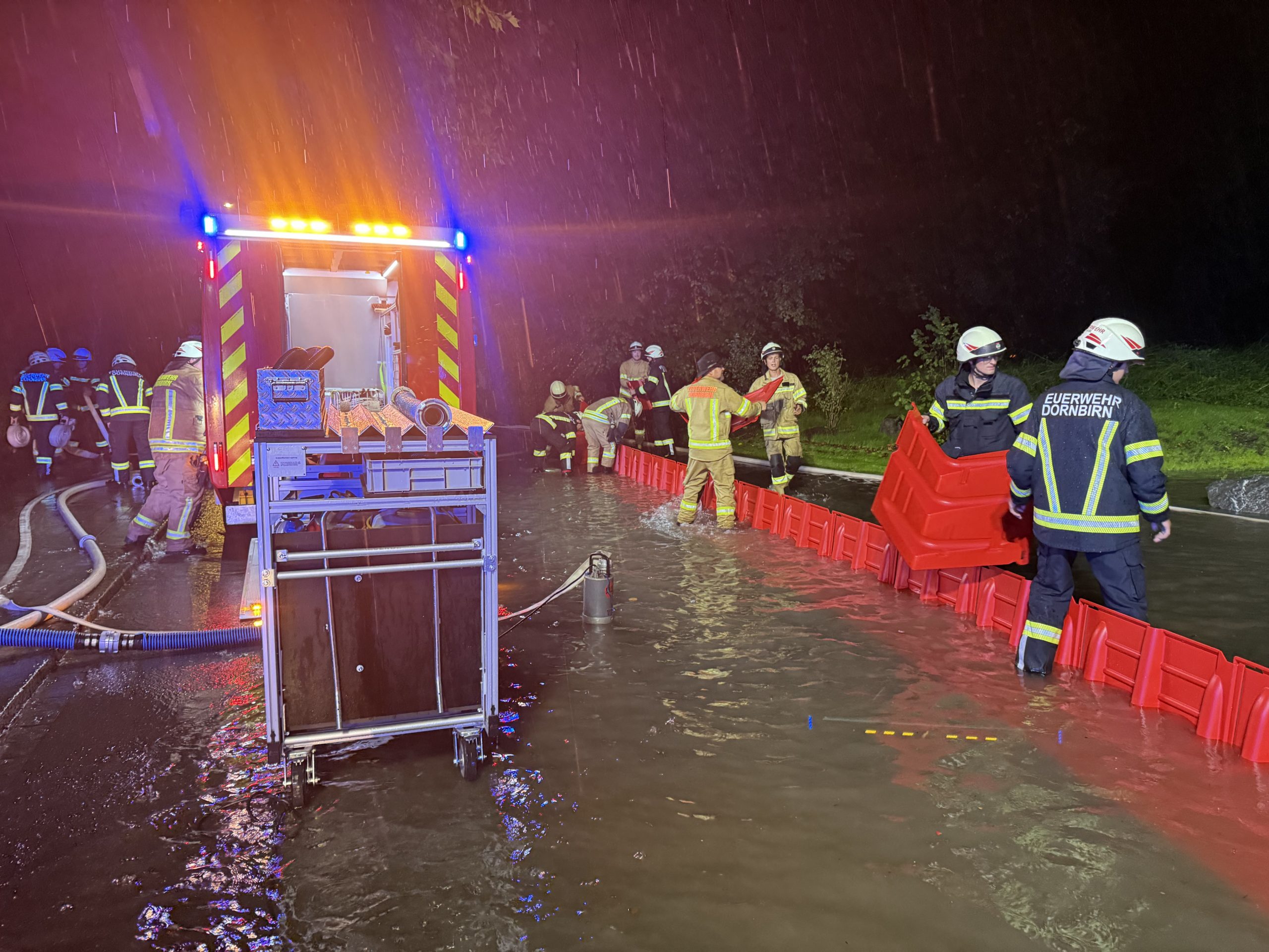 Die Feuerwehren sind am Donnerstagabend im Großeinsatz. Die starken Regengüsse im ganzen Land halten die Florianijünger auf Trab – auch in Dornbirn wurden sie zu mehreren Einsätzen gerufen.