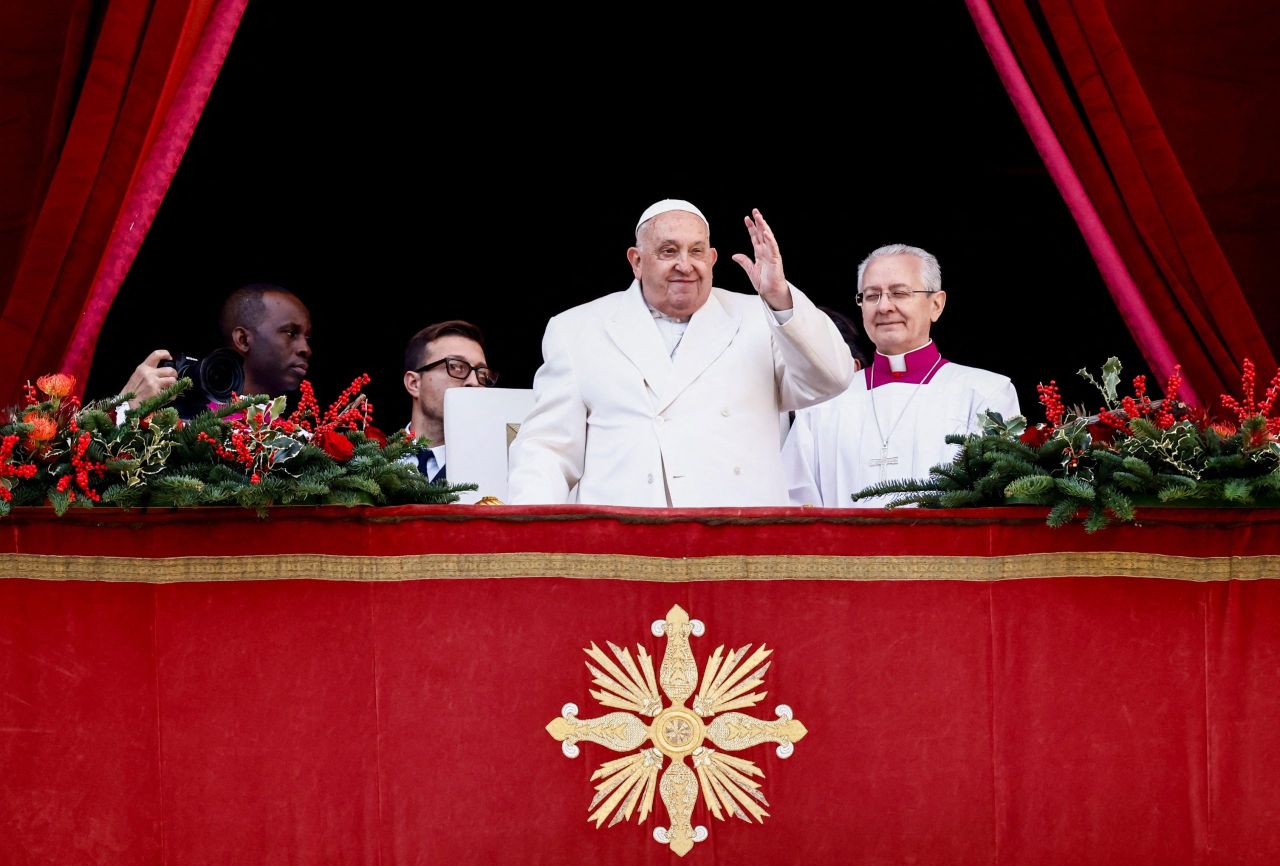 Die Weihnachtsbotschaft und der Segen Urbi et orbi sind Höhepunkte der christlichen Weihnachtsfeier. Mit einer Prozession zur Heiligen Pforte im Petersdom hatte Franziskus am Dienstagabend die Weihnachtsfeiern begonnen. In einer feierlichen Zeremonie zum Heiligen Abend öffnete der 88 Jahre alte Pontifex, der im Rollstuhl saß, die außerhalb Heiliger Jahre von innen zugemauerte Heilige Pforte und durchschritt diese. Die bronzene Tür wird nur anlässlich Heiliger Jahre aufgemacht. An der Zeremonie beteiligte sich auch die rechtsnationale italienische Premierministerin Giorgia Meloni. 30.000 Pilger hatten die Mette auf Bildschirmen auf dem Petersplatz verfolgt.