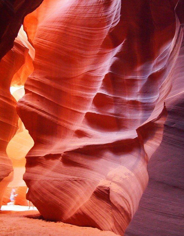 Am Programm stehen nun die nächsten drei Naturwunder in Arizona: zunächst durchwandere ich bei Page den engen Upper Antilope Canyon. Hier hat das Wasser in Millionen von Jahren den roten Sandstein zu bizarren Formen geschliffen, das von oben einfallende Licht sorgt für fantastische Farbspiele. Nur zwei Stunden entfernt liegt dann eine der bekanntesten Szenerien der USA – das Monument Valley. Die drei mächtigen Felsformationen, im englischen „Buttes”, waren Kulisse für zahlreiche Filme. Eine Wanderung führt um den linken Butte herum, sie ist nur mäßig anstrengend und absolut empfehlenswert.