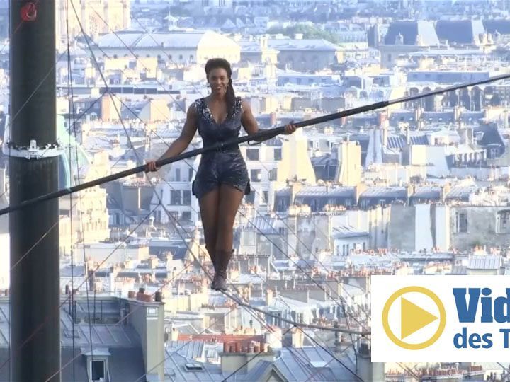 Es war – im wahrsten Sinne des Wortes – ein Drahtseilakt, vollbracht von der Französin Tatiana-Mosio Bongonga, hoch über dem Montmartre im 18. Pariser Arrondissement. Schon die Auffahrt fand unter den staunenden Blicken der versammelten Schaulustigen statt. Und dann setzte Tatiana einen Fuß vor den anderen.