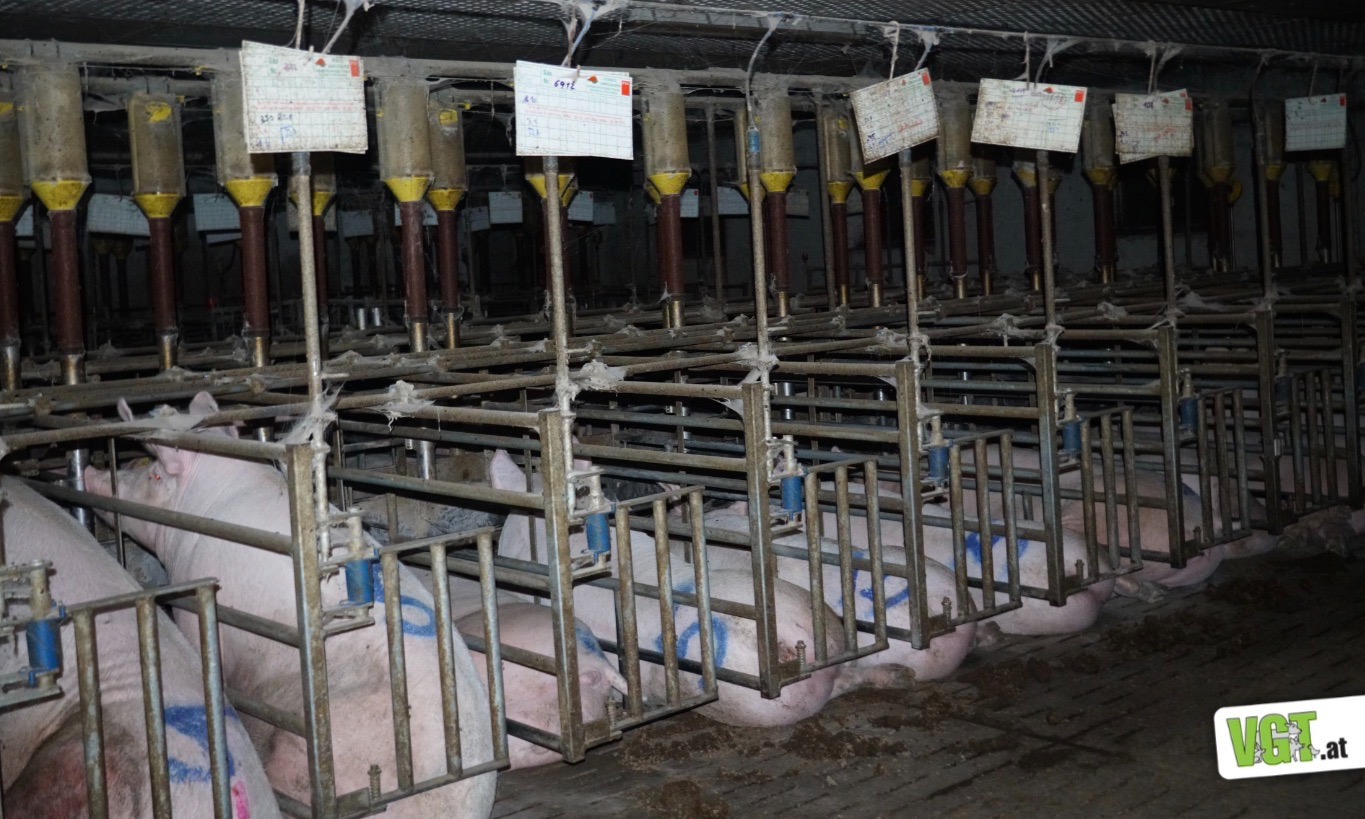 Der VGT sprach in einer Aussendung von "horrenden Zuständen für die etwa 150 bis 200 Mutterschweine und ihre Ferkel". Festgehalten wurde, dass Mutterschweine laut Österreichischem Tierschutzgesetz maximal zehn Tage zur Befruchtung und nur "die kritischen Tage" in der Abferkelbucht in den körpergroßen Käfigen, den sogenannten Kastenständen, eingesperrt verbringen dürfen. "Es besteht jedoch der Verdacht, dass die Mutterschweine in diesem Betrieb ständig in Kastenständen eingesperrt bleiben." Die Verschlussmechanismen und das Beschäftigungsmaterial im Gruppenbereich seien "völlig verstaubt".