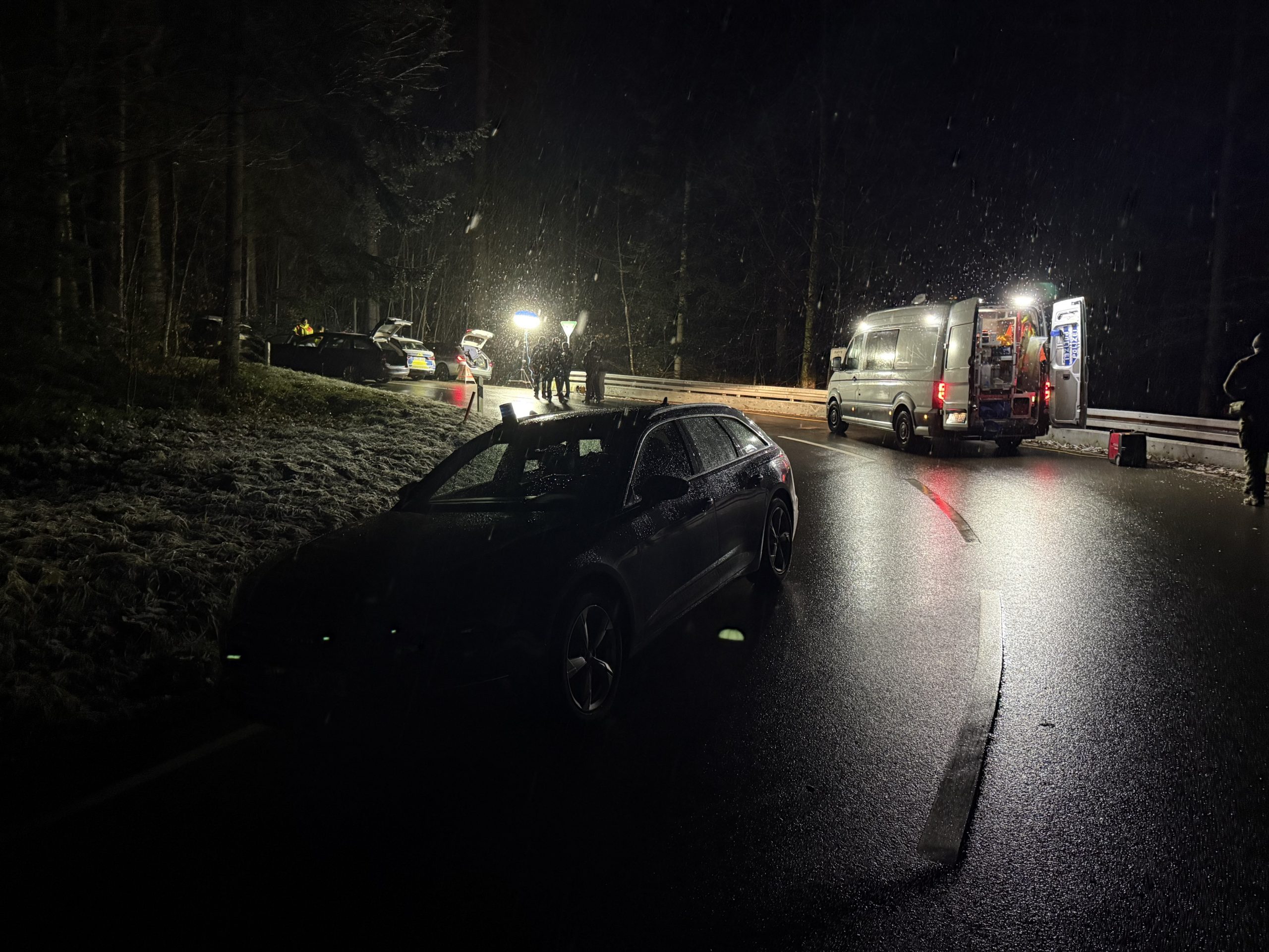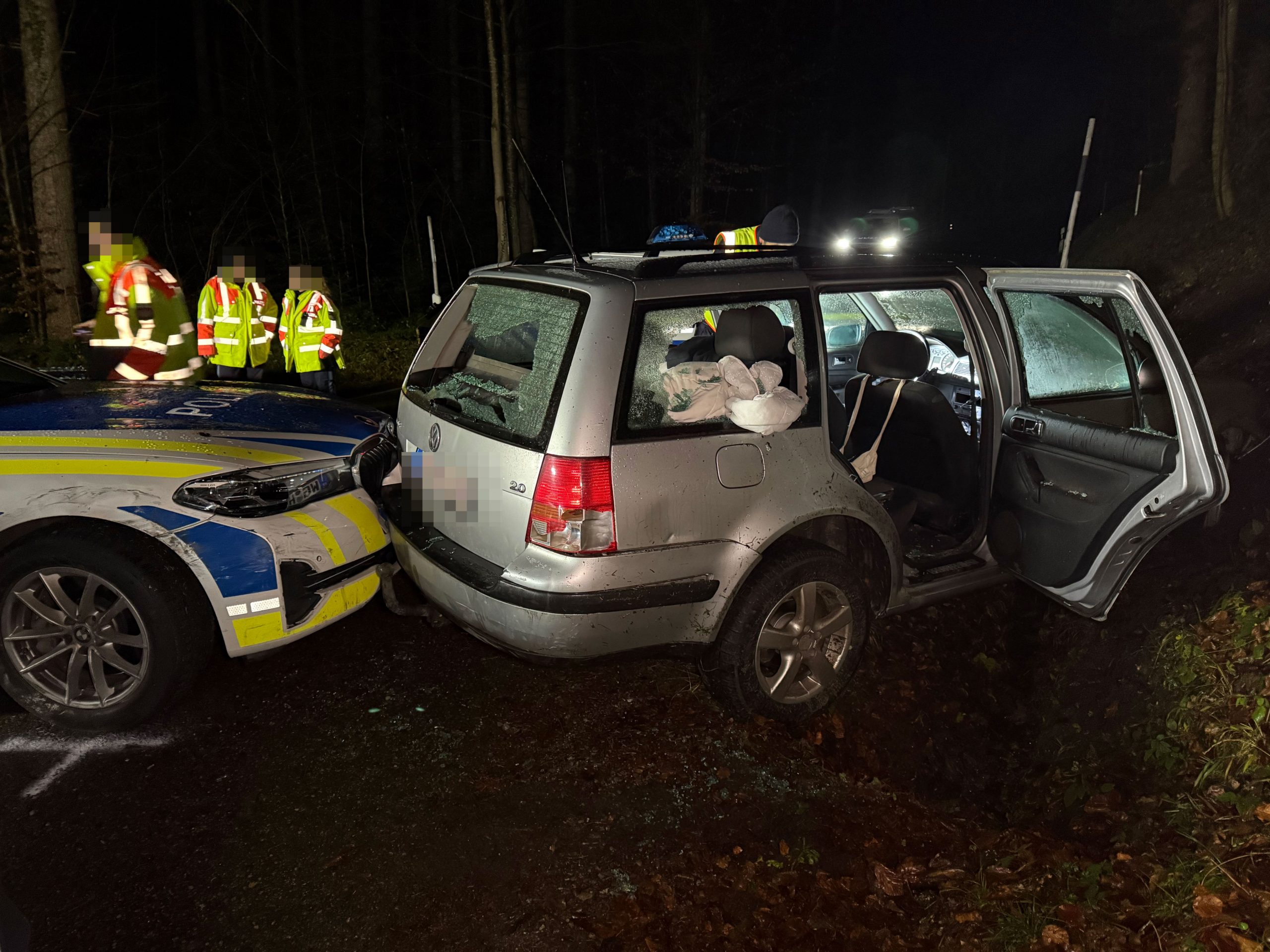 Im Bereich Rohrach verlor der Fahrer die Kontrolle über seinen Pkw, kam von der Fahrbahn ab und konnte schließlich von den Einsatzkräften gestoppt werden. Obwohl das Fahrzeug umstellt war, weigerte sich der Mann, auszusteigen.