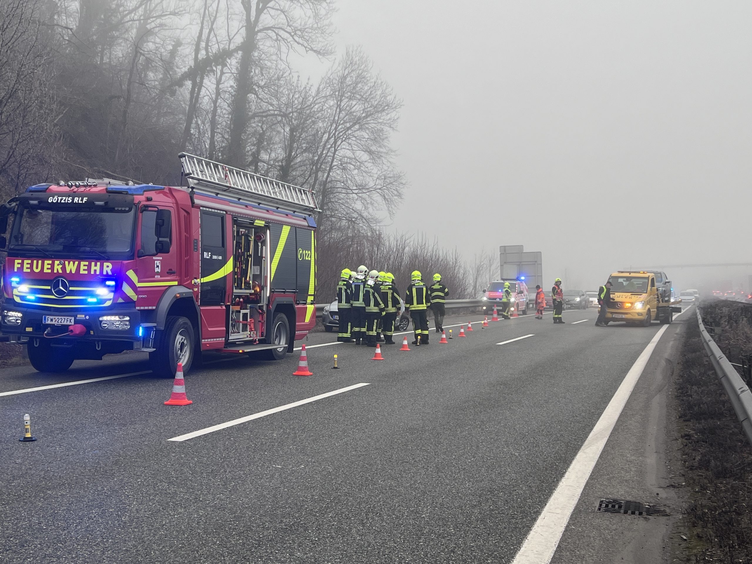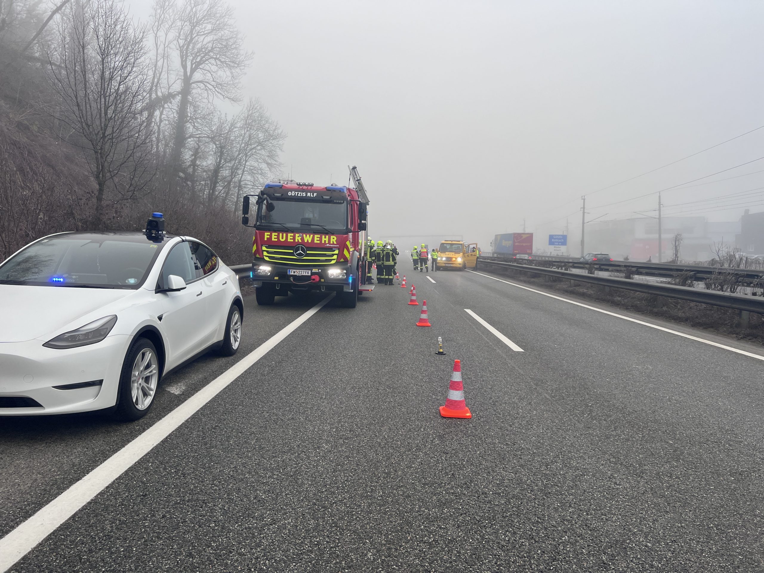 Auf der Rheintalautobahn A14 bei Götzis kam es am Montagmorgen zu einem Verkehrsunfall, in den ein Lkw und drei Pkw involviert waren.