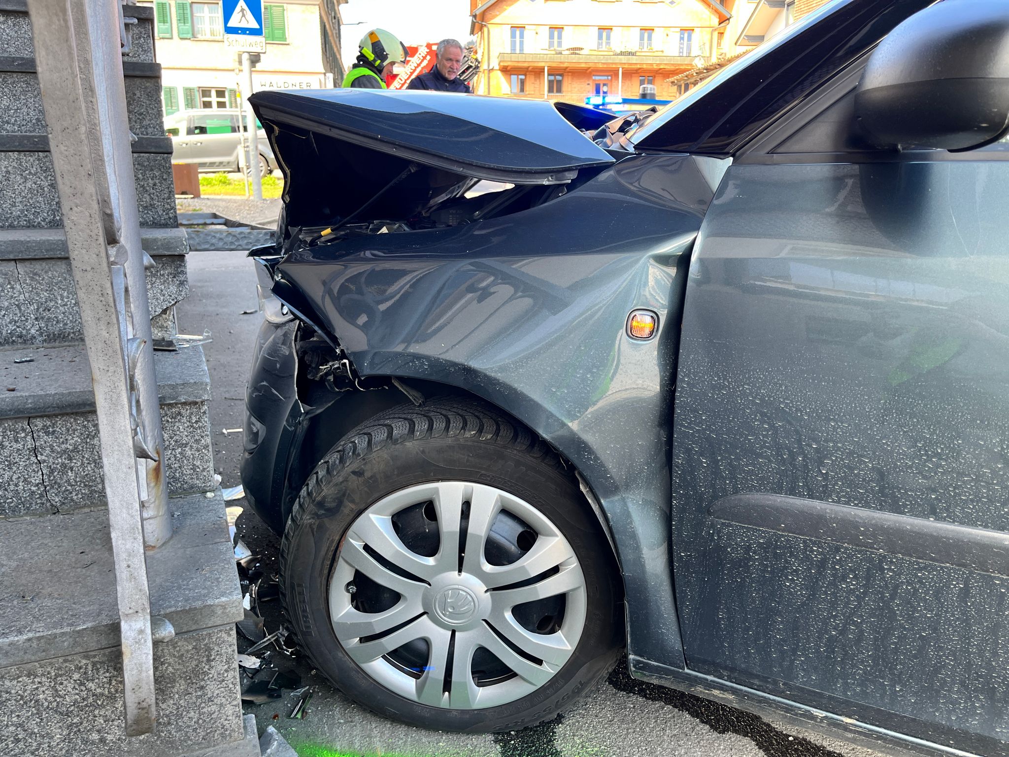 Verkehrsunfall in Egg: Pkw prallt nach medizinischem Notfall gegen Mauer
