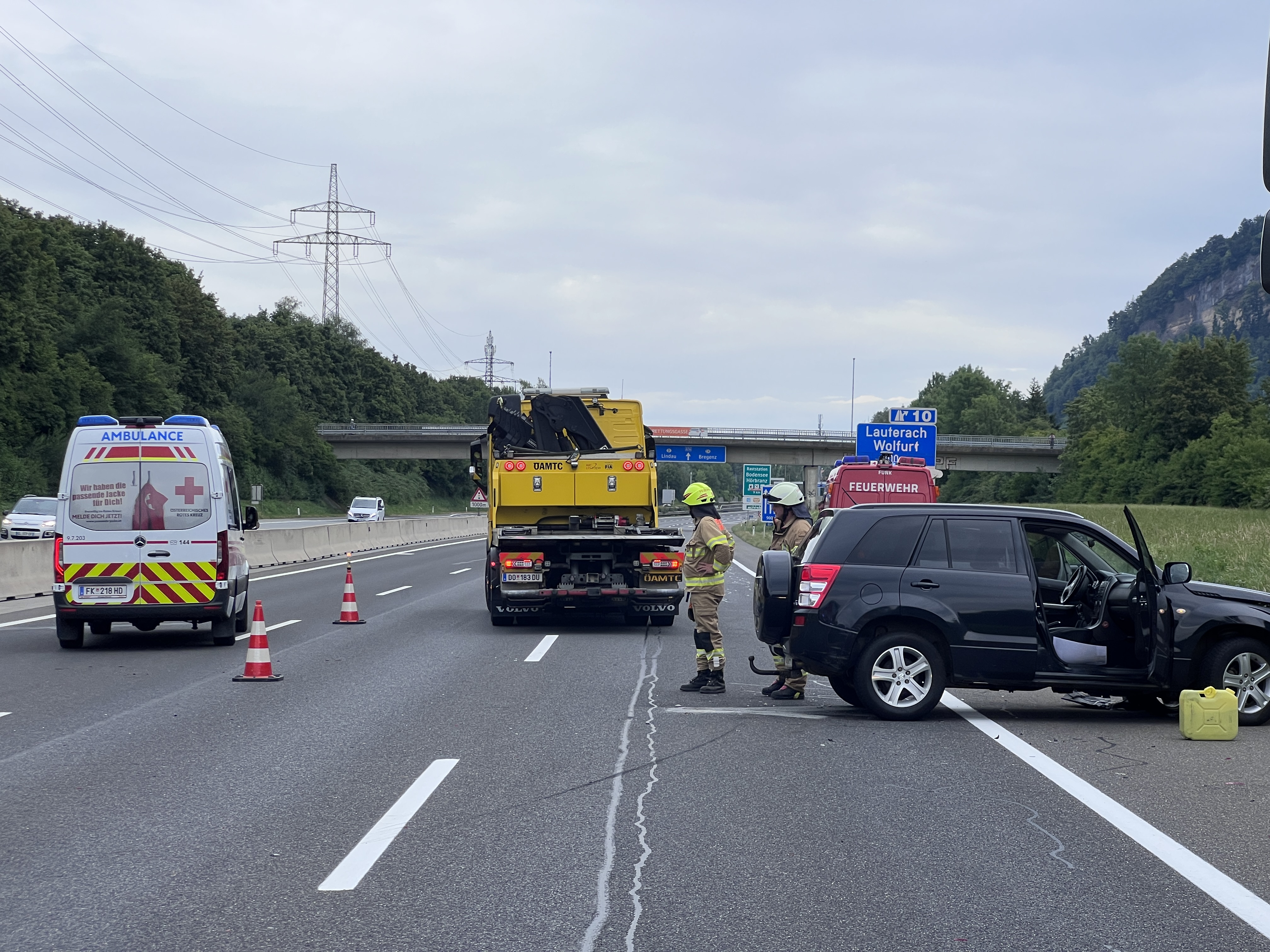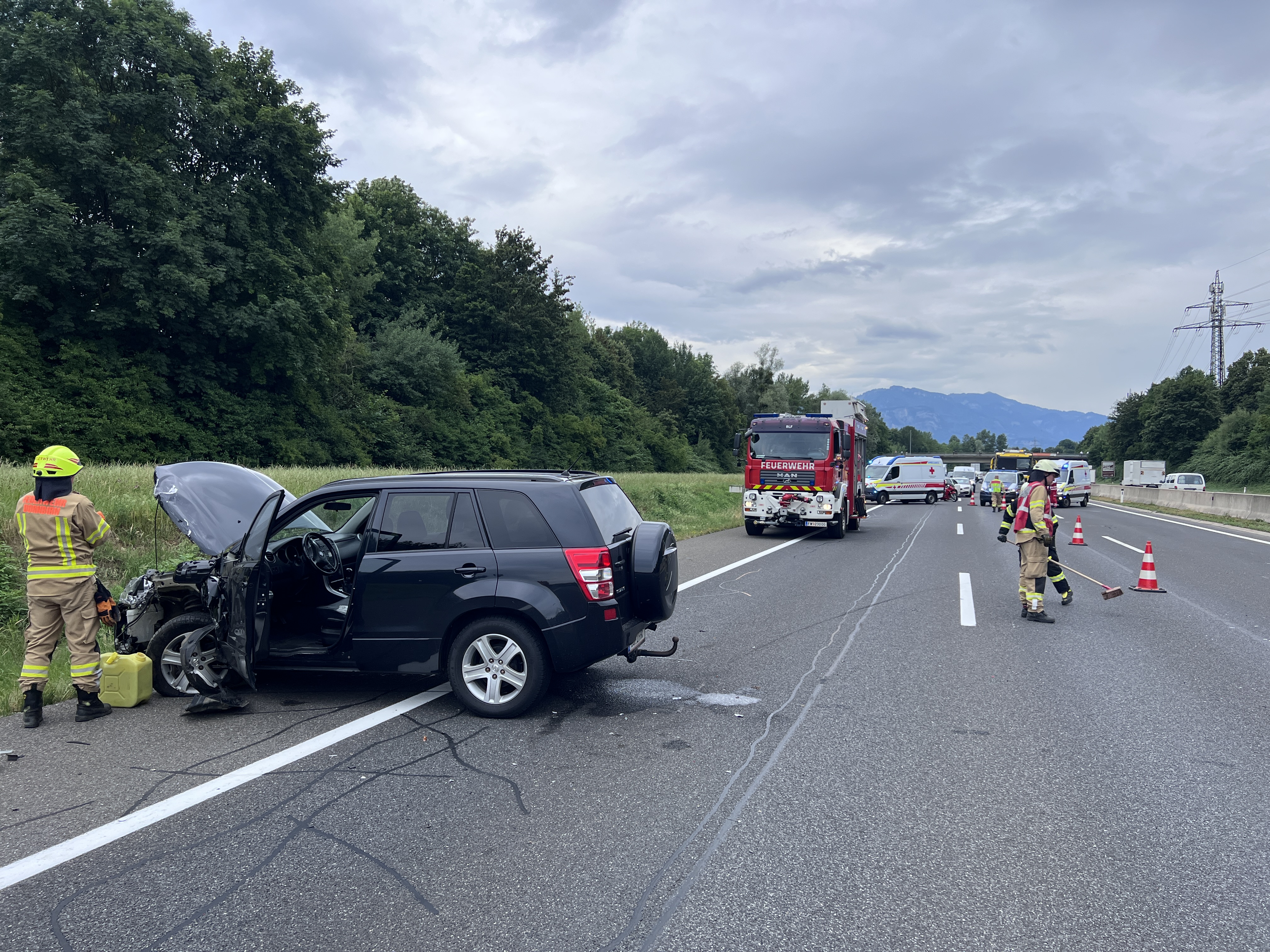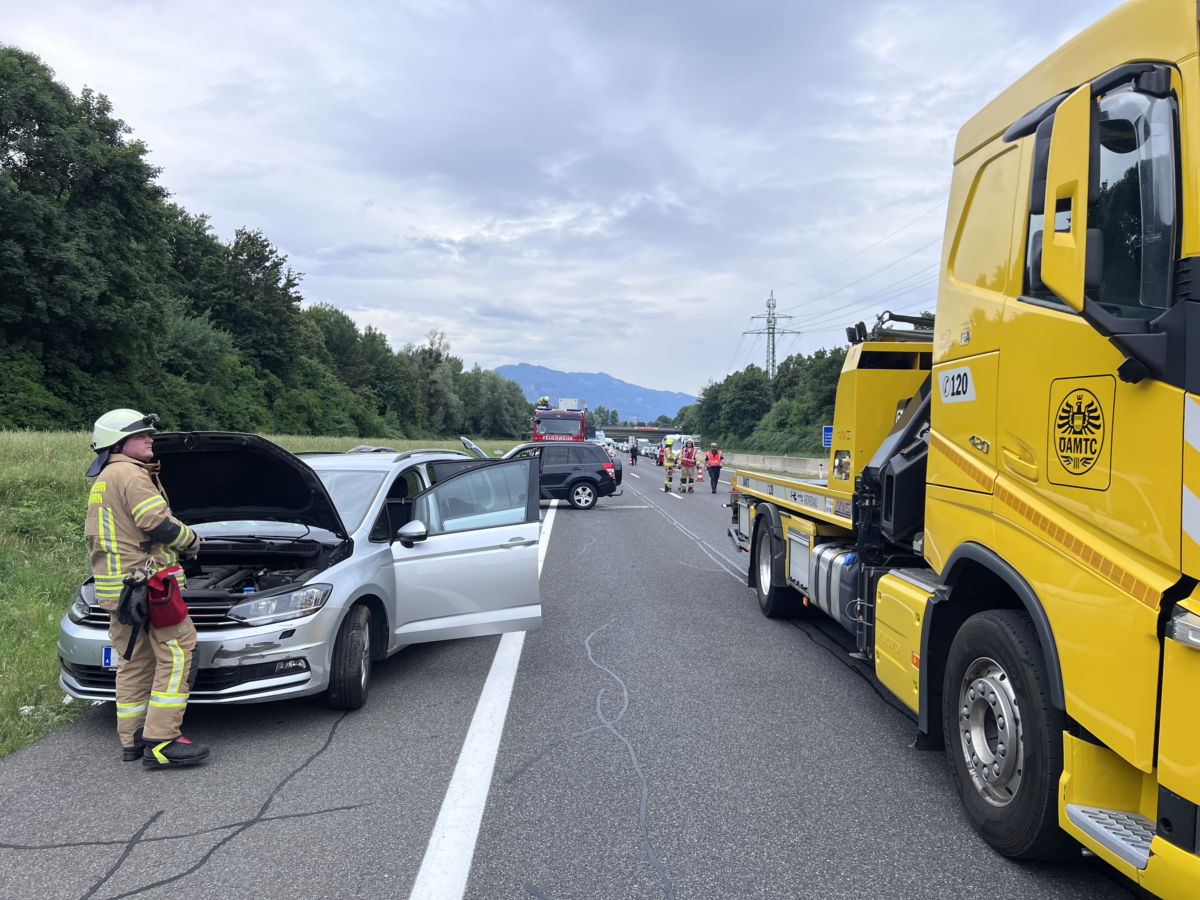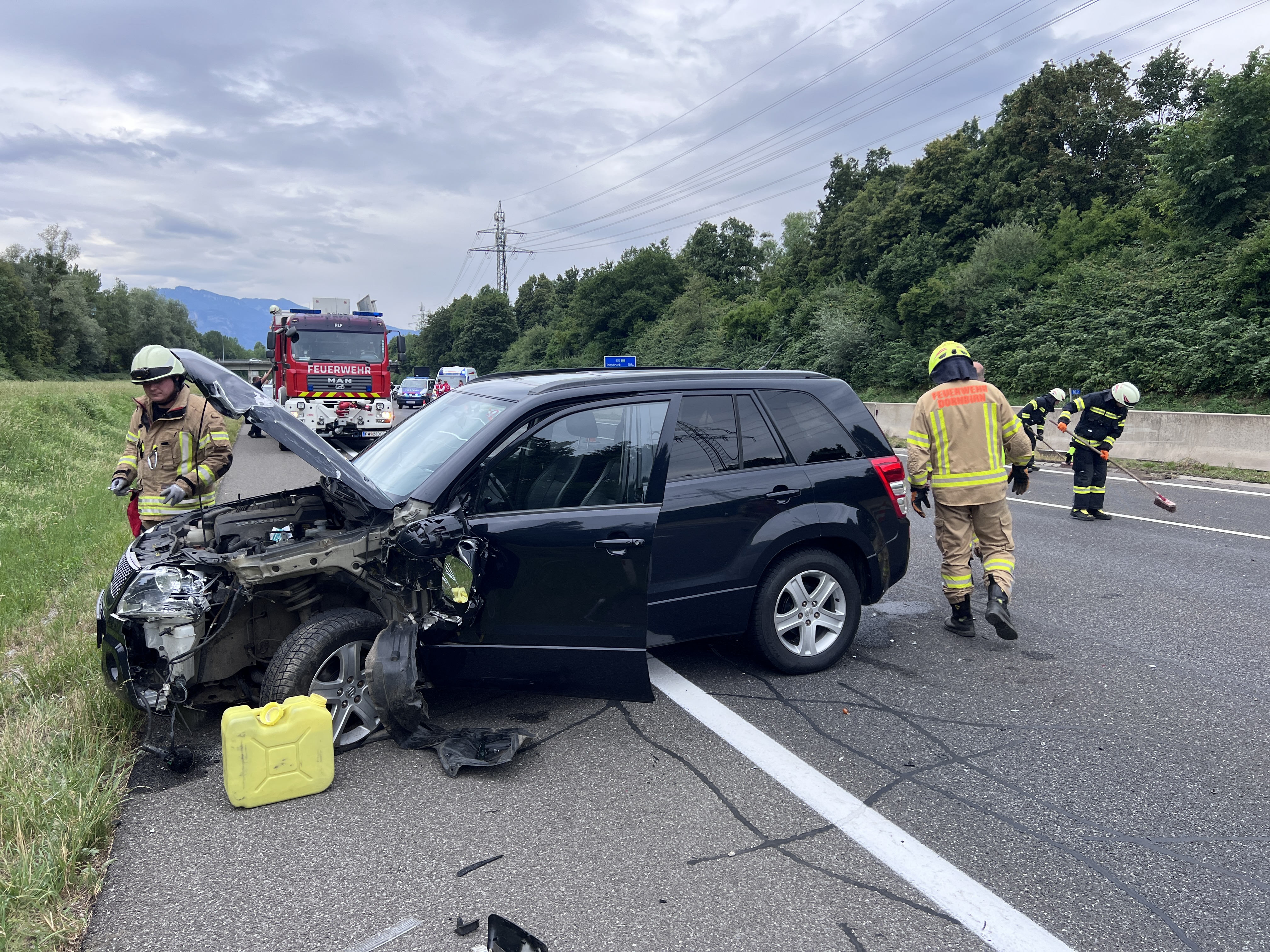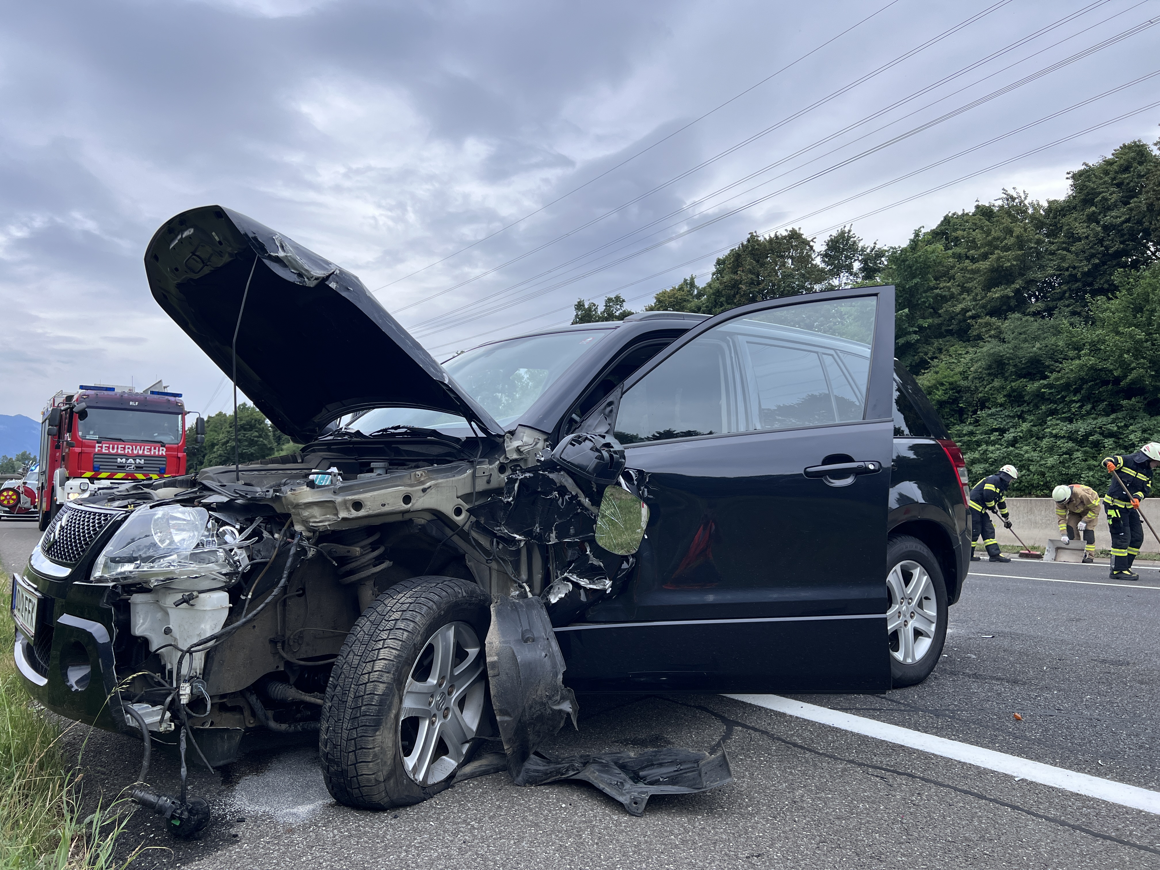 Um kurz nach 17 Uhr wurden die Einsatzkräfte alarmiert, nachdem es auf der A14 in Richtung Deutschland vor der Abfahrt Lauterach zu einem Unfall mit zwei beteiligten Fahrzeugen kam.