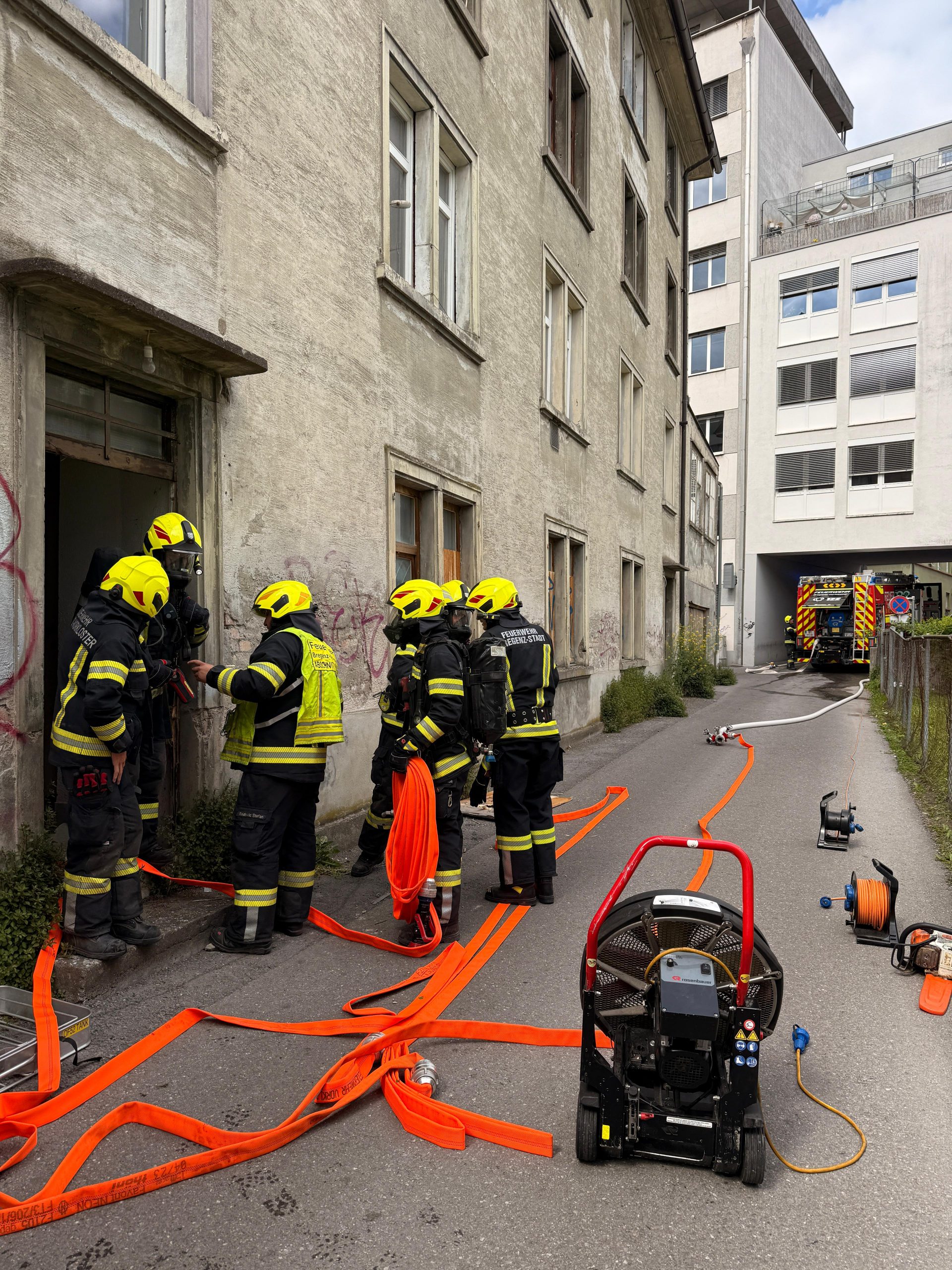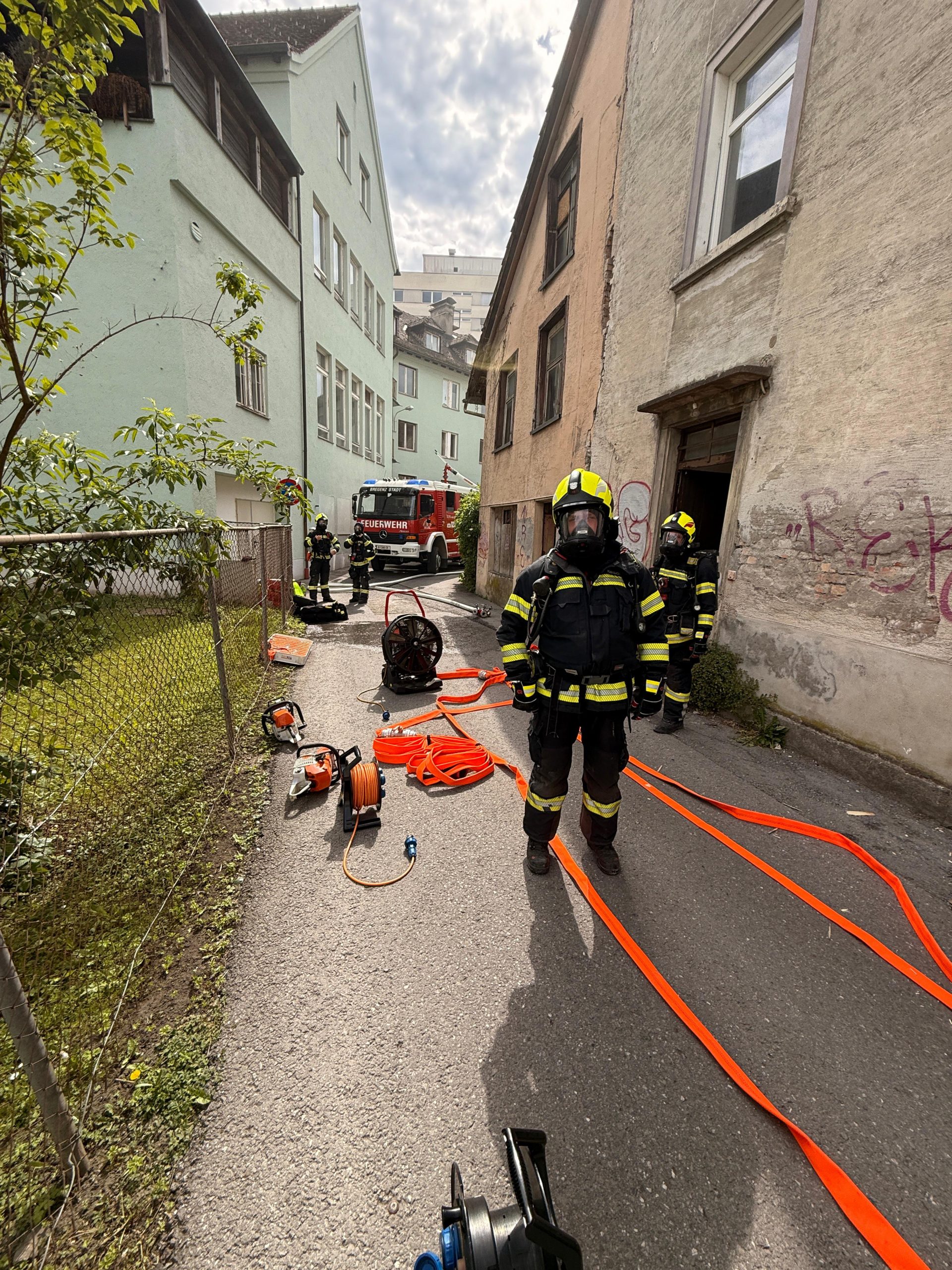 Vor Ort konnte erhoben werden, dass die Rauchentwicklung von einem leer stehenden Gebäude in der Schlossergasse ausging. Beim Eintreffen der Polizei war die Feuerwehr bereits mit den Löscharbeiten beschäftigt. Laut Feuerwehr-Einsatzleiter Christoph Pasi stand beim Eintreffen ein Verschlag zwischen zwei Gebäuden bereits in Vollbrand.