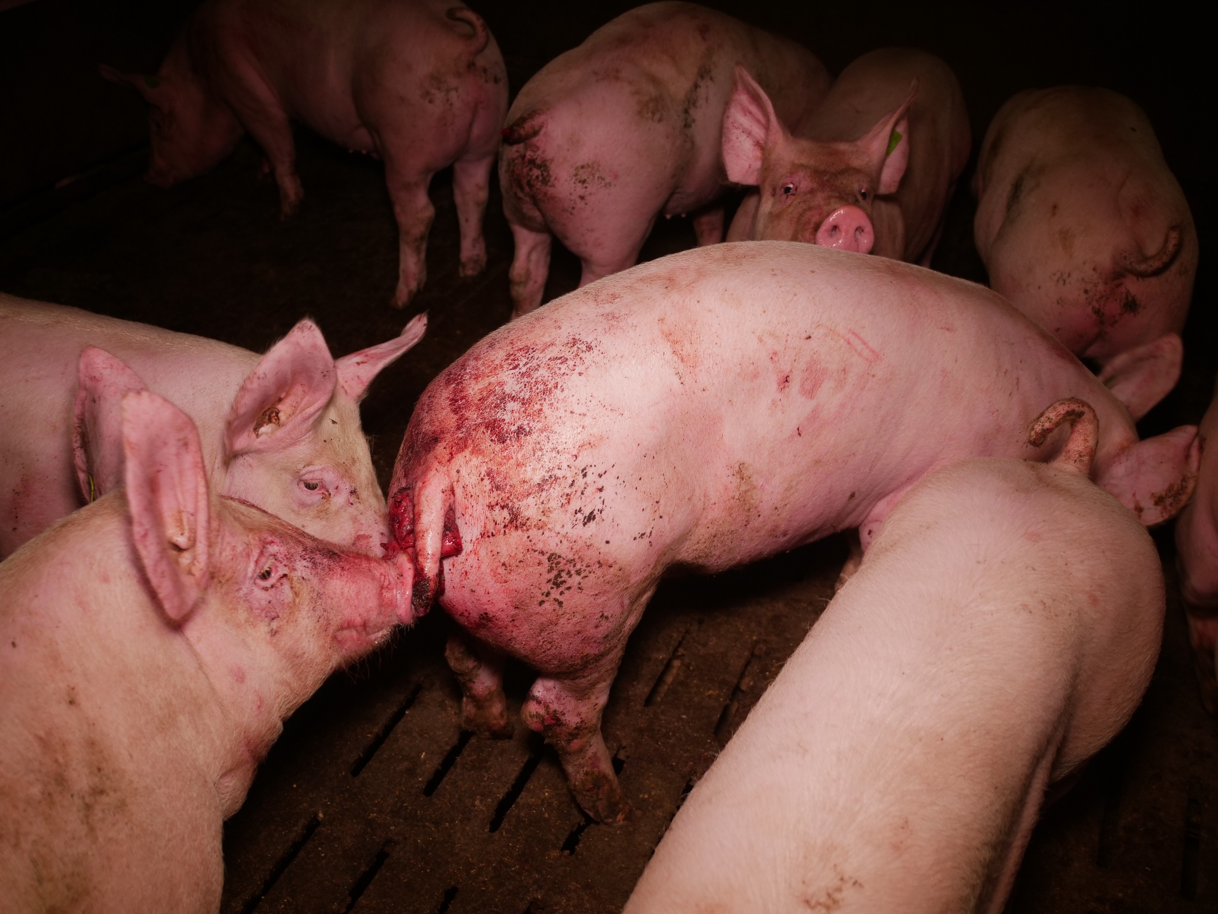 Laut VGT zeigen die Aufnahmen Szenen mit verletzten Schweinen, darunter Eingeweidebrüche, blutige Bisswunden und sogar ein massiver Darmvorfall: "Zerfetzte Darmstücke hängen aus dem After des Tiers, während es in der engen Bucht versucht, den anderen Schweinen zu entkommen", beschreibt Richter.