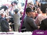 Ein Fan überreichte dem Australier dann eine XXL-Gummipuppe. Und zwar Hugh als Wolverine aus „X-Men”! Klar, dass der Schauspieler sich darüber gefreut hat!