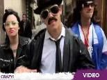 Aber nicht zu vergleichen mit den Jungs: Joe trägt nicht nur einen engen blauen Jogginganzug von Anno dazumal. Mit lockiger Vo-ku-hi-la-Mähne und fieser Sonnenbrille sieht er aus wie ein Porno-Star. Ebenso wie Brüderchen Nick: SO sieht er also mit Schnurri aus!