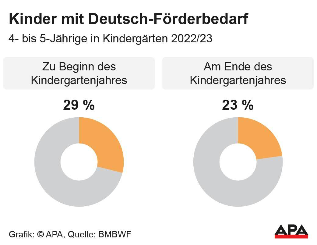 Beim Familiennachzug, der vor allem Wien betrifft, waren Kinder bis sieben Jahre zuletzt die größte Gruppe. Nach den Schulen haben zuletzt auch die Kindergärten vor Platzmangel und Überforderung gewarnt. Schon länger kämpfen diese mit Personalmangel, der Anteil an Kindern mit nicht-deutscher Erstsprache lag laut Statistik Austria schon 2022/23 bei knapp 59 Prozent. Bundesweit war es ein Drittel, mehr als ein Viertel der Vier- und Fünfjährigen brauchte Deutschförderung.