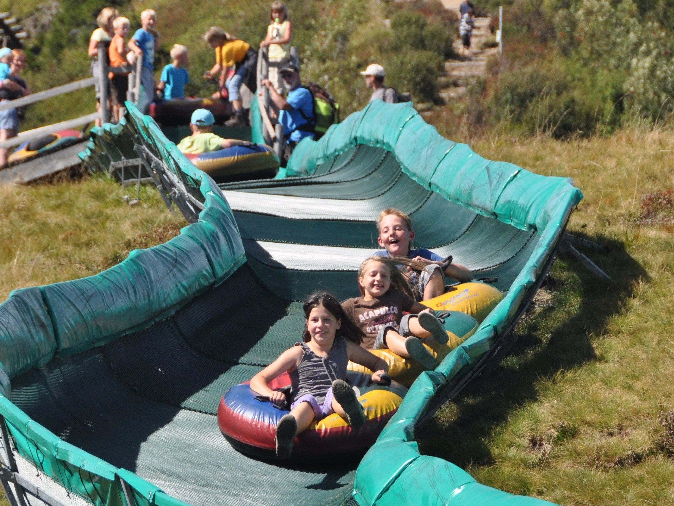 TIPP für Kinder: Die Tubingbahn in Faschina – der garantierte Rutschspaß ist die größte Vorarlbergs. Mit einem Förderband geht’s einfach und schnell an die Startrampe zu den ca. 75 Metern Rutschspaß. Die Sommer-Tubingbahn ist zu den gleichen Zeiten geöffnet, wie die Panoramabahn Stafelalpe und kann bereits von Kindern ab 5 Jahren benutzt werden.