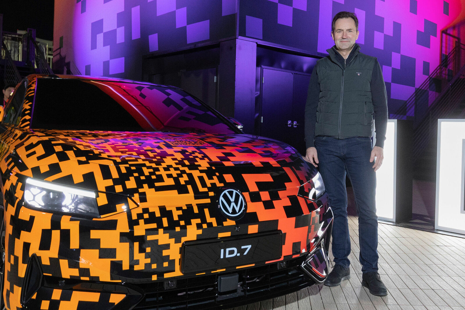 Der neue ID.7 bei seiner Präsentation mit "QR-Code-Lackierung". ©VW