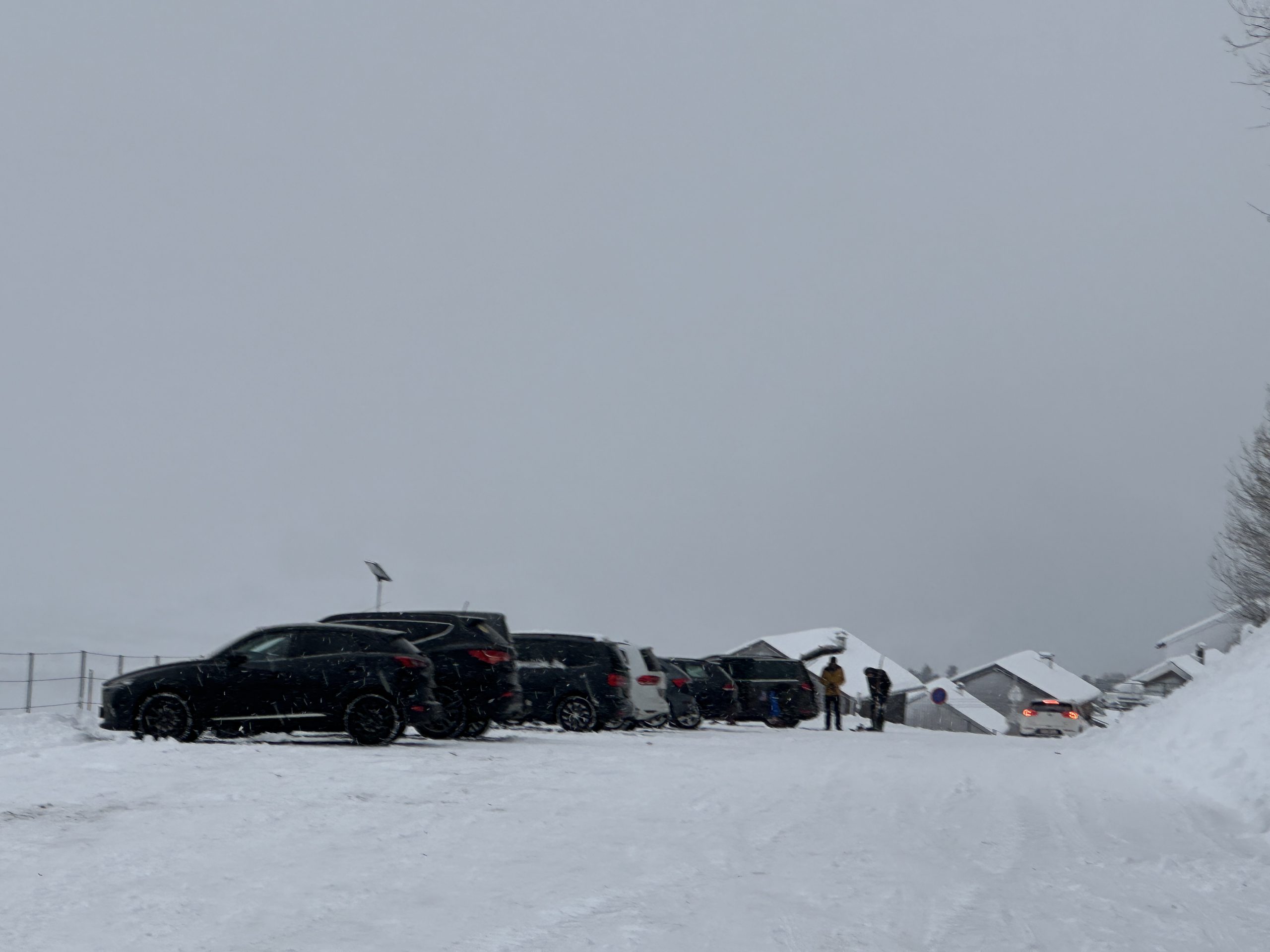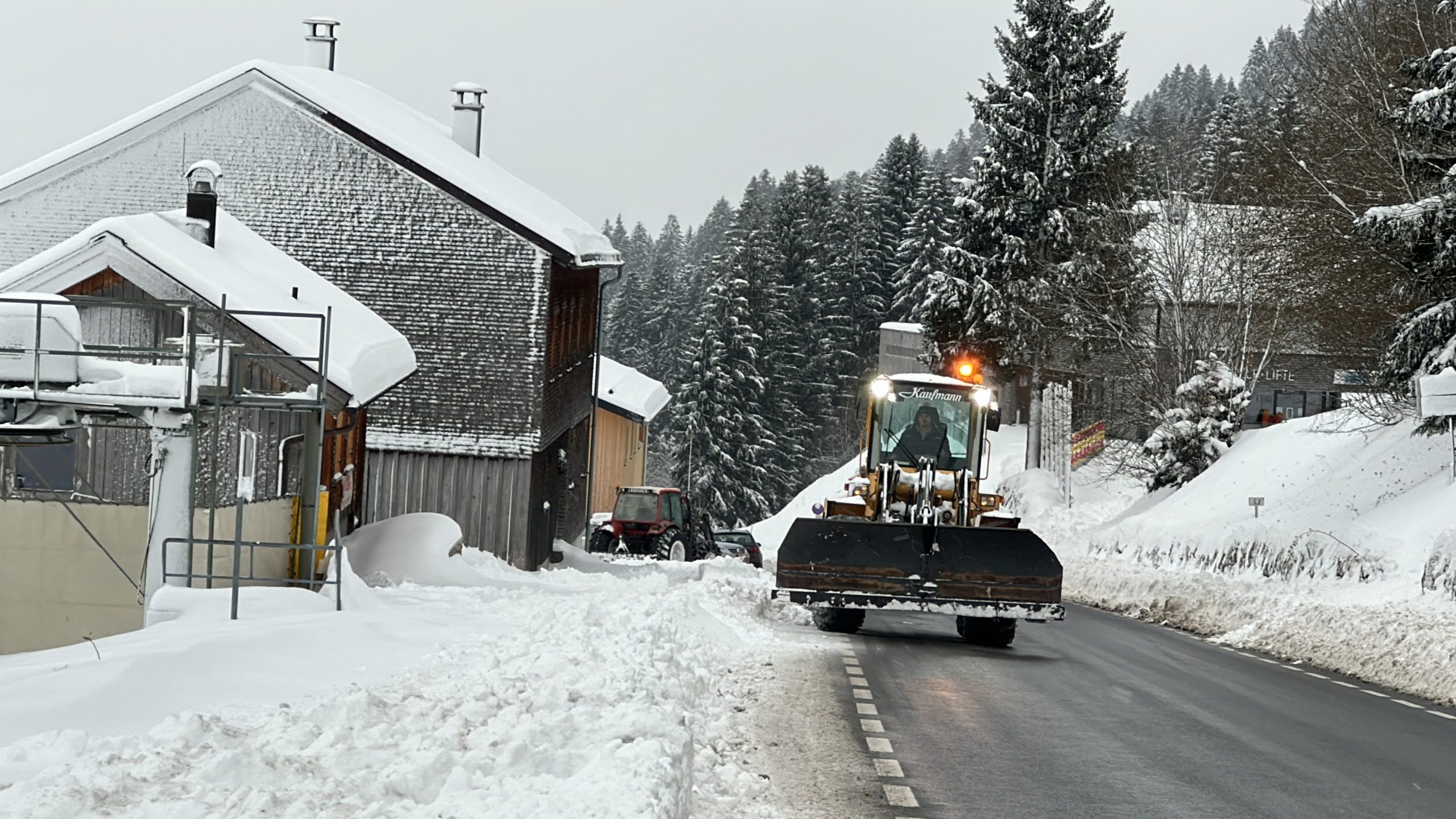 Während die Skitourengehener, Spaziergänger und Rodler ihre Freude am Schnee hatten, gab es für die Mitarbeiter im Skigebiet noch einiges zu tun: Eine Pistenraupe war noch in Richtung Meierei unterwegs. Auch der Winterdienst war mit Schneepflügen auf den Parkplätzen und auf der Straße anzutreffen.