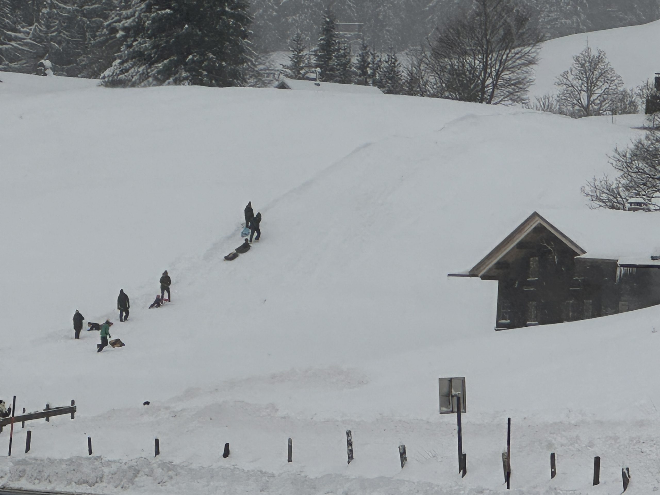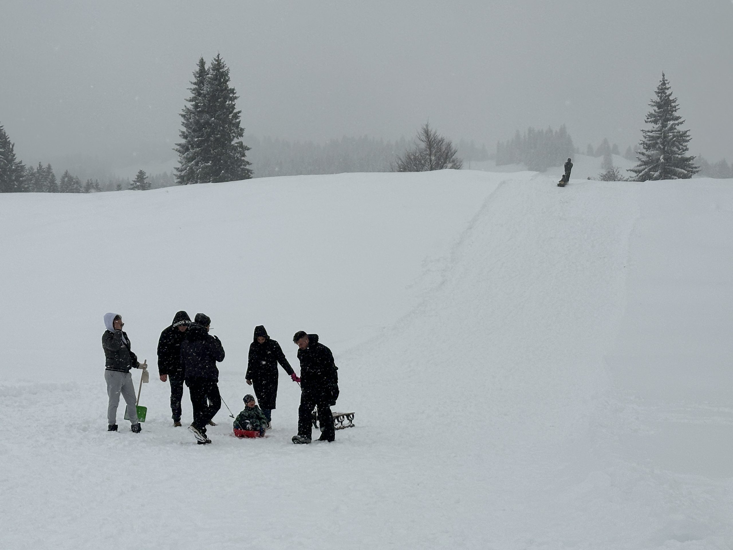 Rodelvergnügen trotz Schneefall