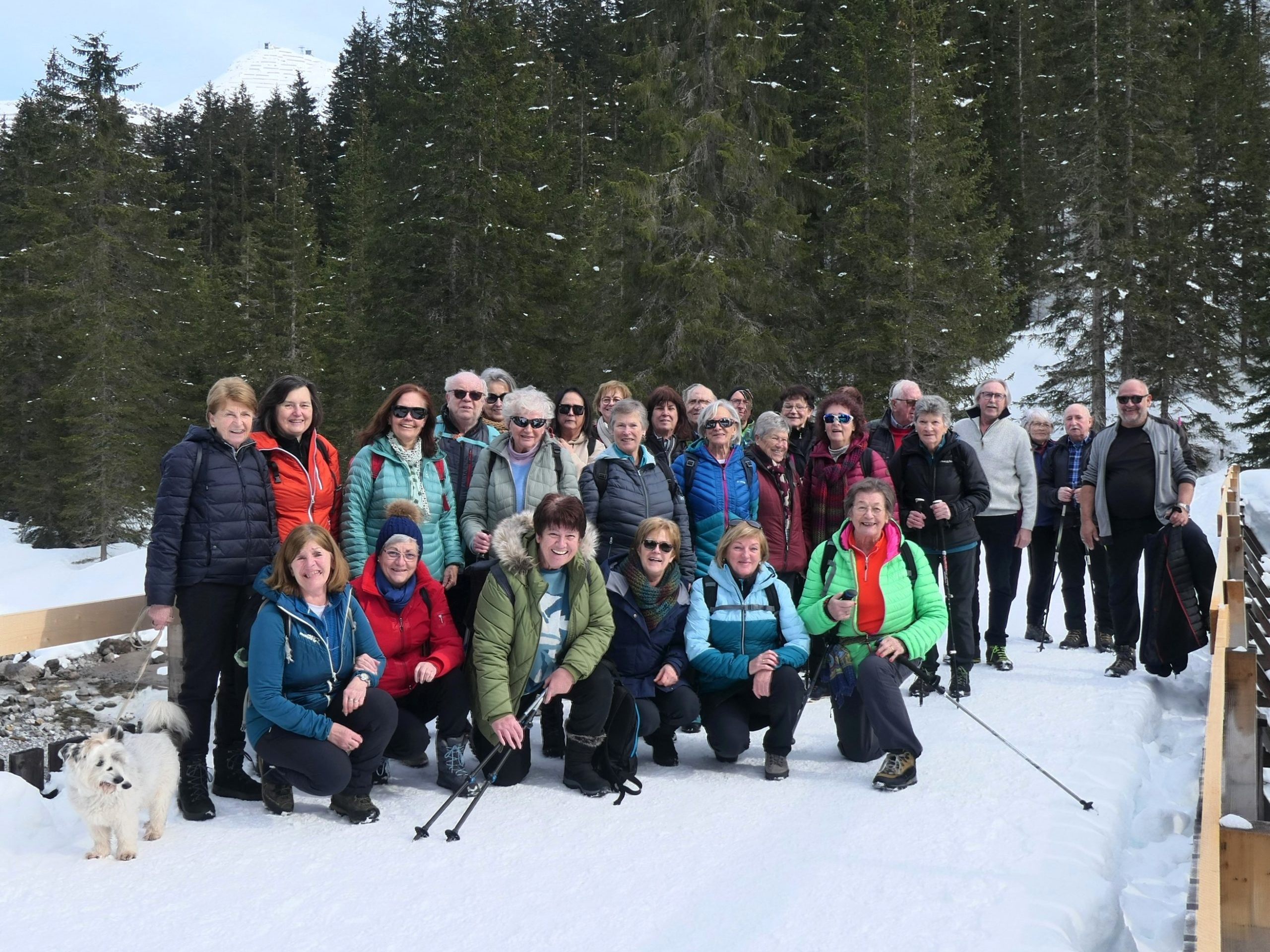 Chauffiert wurden wir traditionell von Amann Reisen mit dem Busfahrer Thomas, der uns wie immer gut und sicher ans Ziel und wieder nach Hause brachte. Von der Talstation der Rüfikopfbahn startete die Wanderung über einen sehr schönen Winterwanderweg, teilweise entlang des Lechs, nach Zug. Anfangs war es leicht bewölkt, doch bald setzte sich die Sonne durch. Somit war der Blick auf Zug mit der kleinen Kirche im Mittelpunkt und dahinter den verschneiten Bergen noch schöner anzuschauen. Nach der Kirche befindet sich das „Alte Schualhus“, das von allen bestaunt und viel fotografiert wurde. Man würde es nicht ahnen, dass sich in diesem kleinen Haus ein Gourmetrestaurant befindet. Angelangt beim Restaurant Hartenfels wurden wir von einem einladenden Kuchenbüffet überrascht. Mit einem geselligen Zusammensitzen endete der Nachmittag und wir traten gegen 17 Uhr die Heimreise an.