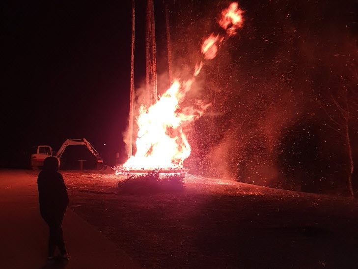 Die Funkenzunft hatte den Funken ursprünglich am Sonntag anzünden wollen, wegen des starken Windes den Termin dann auf Dienstag verschoben. Allerdings wurde auch dieser Termin dann witterungsbedingt abgesagt.