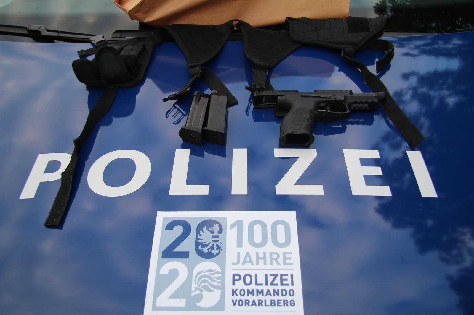 Am Mittwoch um 18 Uhr wurde die Polizeiinspektion Lochau verständigt, dass vier junge Männer bei einer Aussichtssitzbank an der Pfänderstraße in Lochau, oberhalb des Jesuheims mit einer Waffe hantieren und damit schießen würden. Mehrere Polizeistreifen konnten gegen 18.10 Uhr vier 19- und 21-jährige, in Bregenz und Hörbranz wohnhafte Männer feststellen und kontrollieren. Bei der Durchsuchung stellte sich heraus, dass einer der Männer eine CO2-Pistole (minderwirksame Waffe) in einem Schulterholster um den Oberkörper geschnallt hatte. Bei einem weiteren konnten mehrere Gramm Cannabiskraut sichergestellt werden.