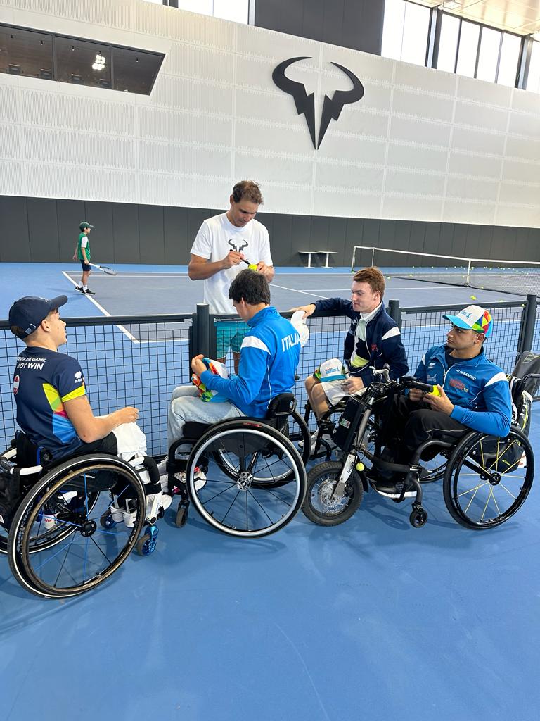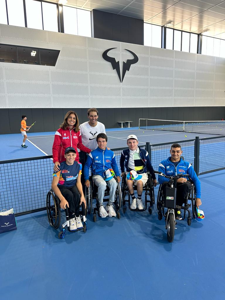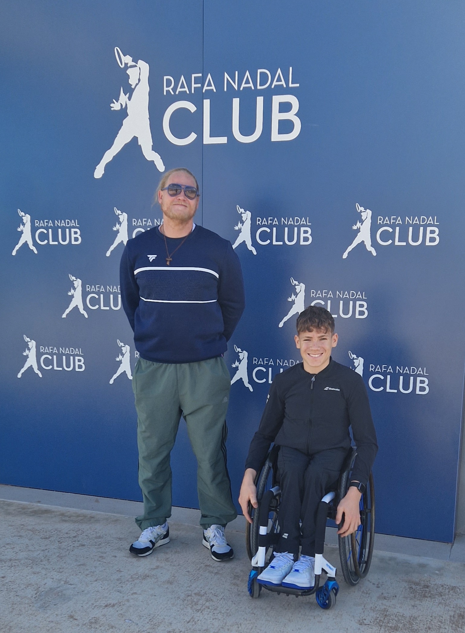 Großer Tag für Rollstuhltennisspieler Maximilian Taucher. Der noch 15 Jahre alte Hohenemser vom Rollstuhlclub ENJO Vorarlberg absolvierte auf Einladung des italienischen Tennisverbands mit seinem Coach Maximilian Forer und seinem Vater Alexander Taucher eine intensive Trainingswoche in der Rafa Nadal Academy in Manacor auf der Insel Mallorca. Absoluter Höhepunkt war ein Treffen mit dem 37-jährigen Spanier, dem großen Idol und Vorbild der Hohenemsers.