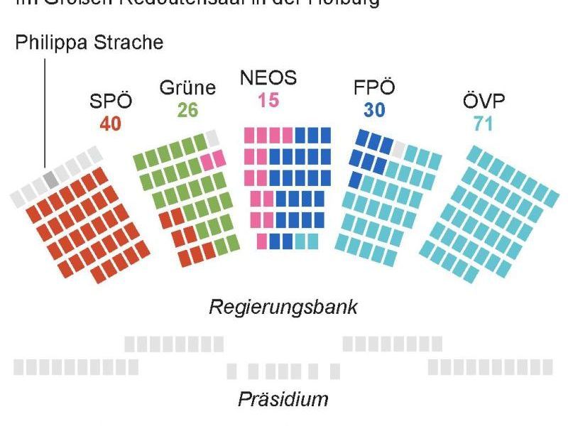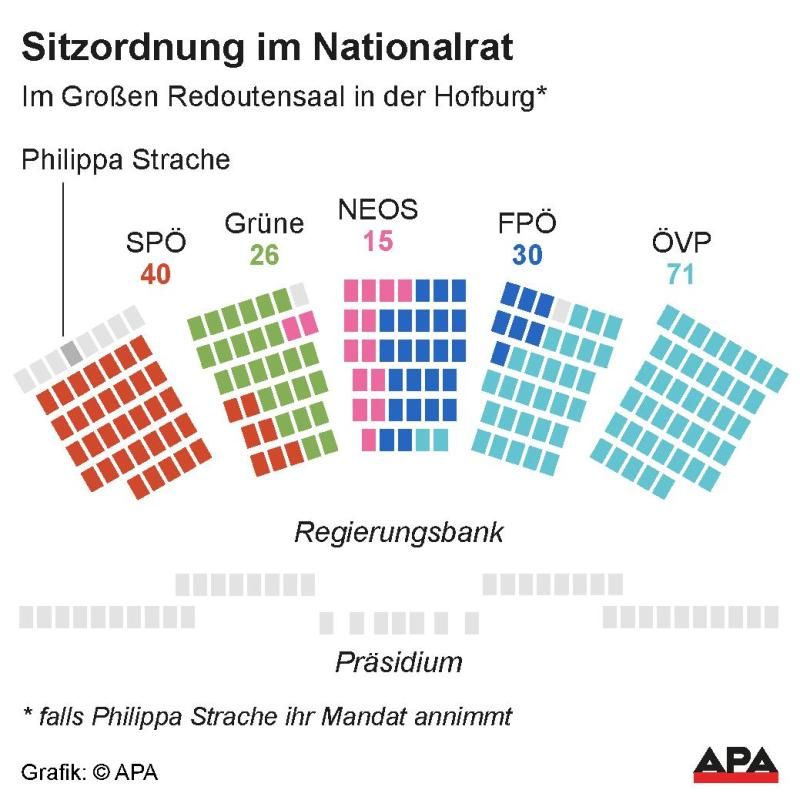 Philippa Strache wurde am Mittwoch in der konstituierenden Nationalratssitzung als Mandatarin angelobt. Sie zog allerdings als wilde Abgeordnete ein, weil ihr die FPÖ die Aufnahme in ihren Parlamentsklub verweigert hat. Auch sitzt die Ehefrau von Ex-FPÖ-Chef Heinz-Christian Strache nicht in den Reihen der freiheitlichen Abgeordneten, sondern auf einem Einzelplatz in der letzten Reihe hinter der Riege der SPÖ-Abgeordneten.