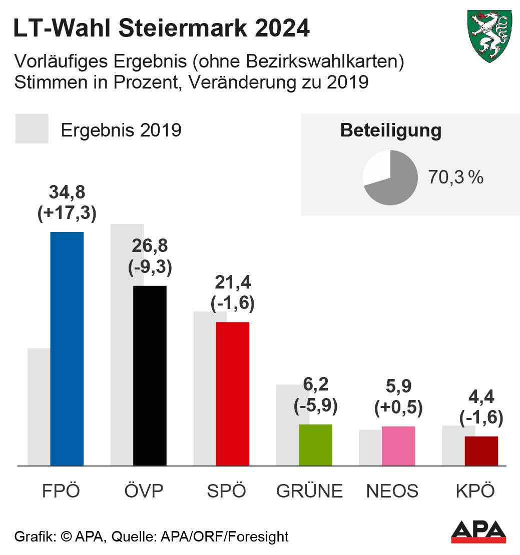 Vorläufiges Endergebnis der Steiermark-Wahl 2024