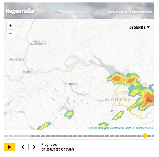 Die Nacht von Dienstag auf Mittwoch wird wechselnd bewölkt sein und es besteht weiterhin das Potential für kräftige Gewitter, vor allem im Unterland und im Bodenseeraum.