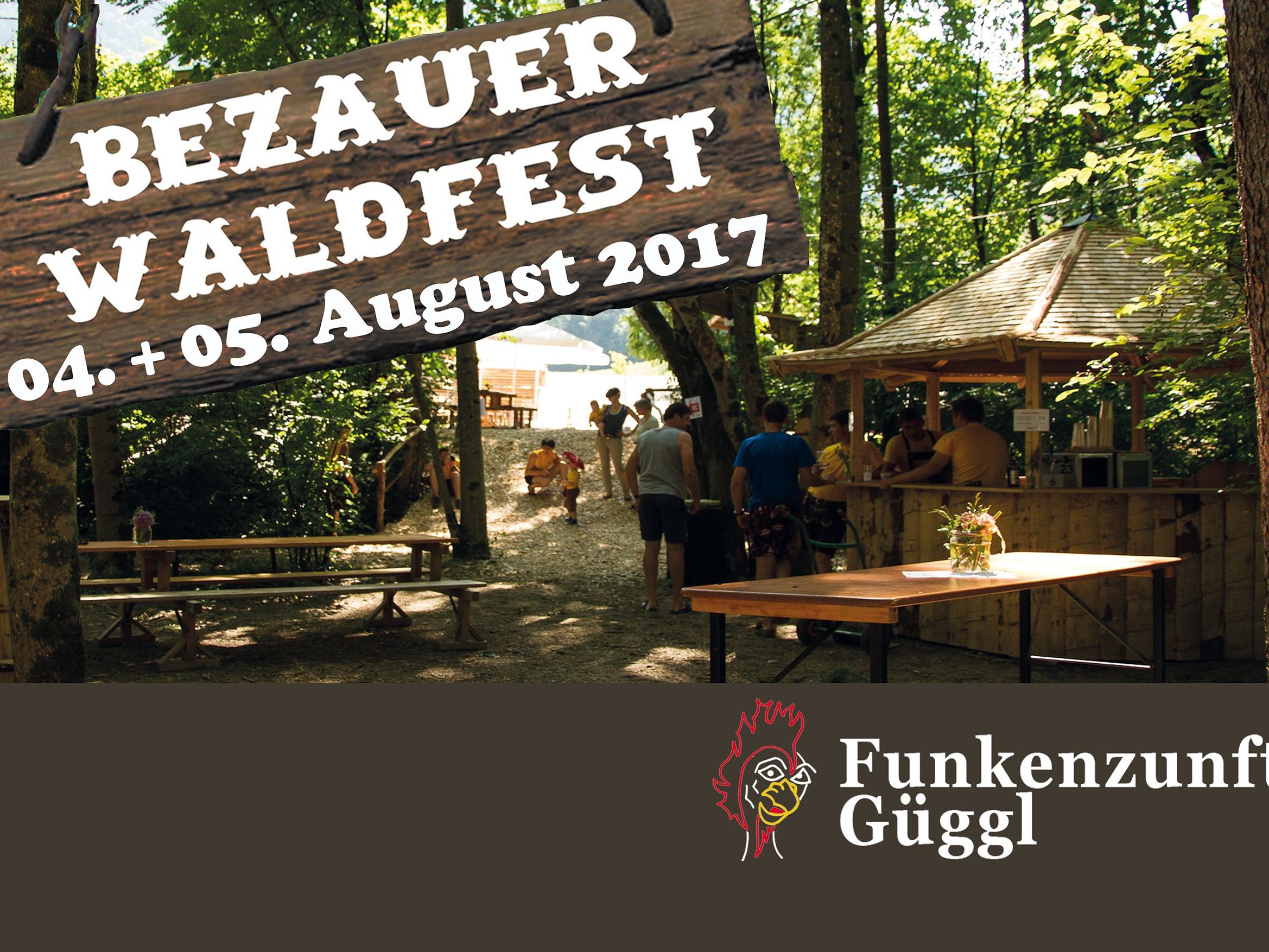 Nach großem Erfolg 2012 und 2013 veranstaltet die Funkenzunft Güggl heuer zum 3. mal das Bezauer Waldfest. Es findet in der Nähe des Bauhofes Bezau, in einzigartigem Ambiente unter freiem Himmel statt. Am Freitag, den 4. August starten wir ab 20 Uhr mit der Partyband Zündstoff ins Wochenende. Am Samstag, den 5. August beginnen wir bereits um 16 Uhr mit dem Kinderprogramm, inklusive Waldkegelbahn und der Zweitauflage des legendären Schubkarren-Rennens. Ab 20 Uhr heizt uns dann Servus aus Tirol so richtig ein.
