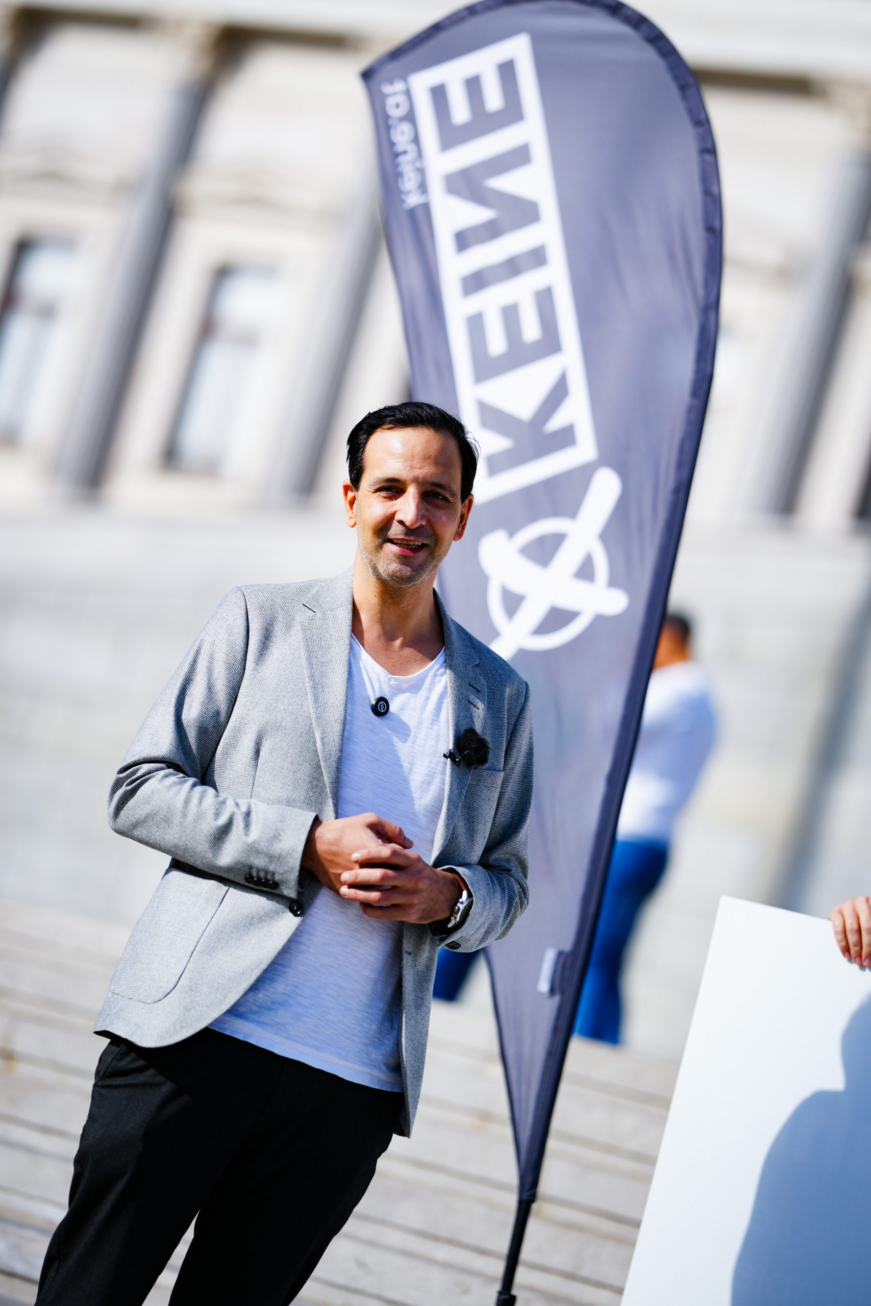 Auch die Grünen sind in Person von Werner Kogler auf den "KEINE"-Plakaten vertreten. Der grüne Bundessprecher hatte die Chancen auf eine Koalition mit der ÖVP noch wenige Wochen vor der Wahl 2019 auf "0 Prozent" geschätzt. Dass es schlussendlich doch zu Schwarz-Grün kam, wäre ein Mitgrund dafür, dass die Menschen "Wahlversprechen sowieso nicht mehr glauben", so Mulla. Den NEOS gestand er zwar zu, dass sie "die Demokratie auf jeden Fall schätzen", mit ihrer "neosliberalen" Wirtschaftspolitik stünden die Pinken aber ebenso für das kritisierte Profitdenken.