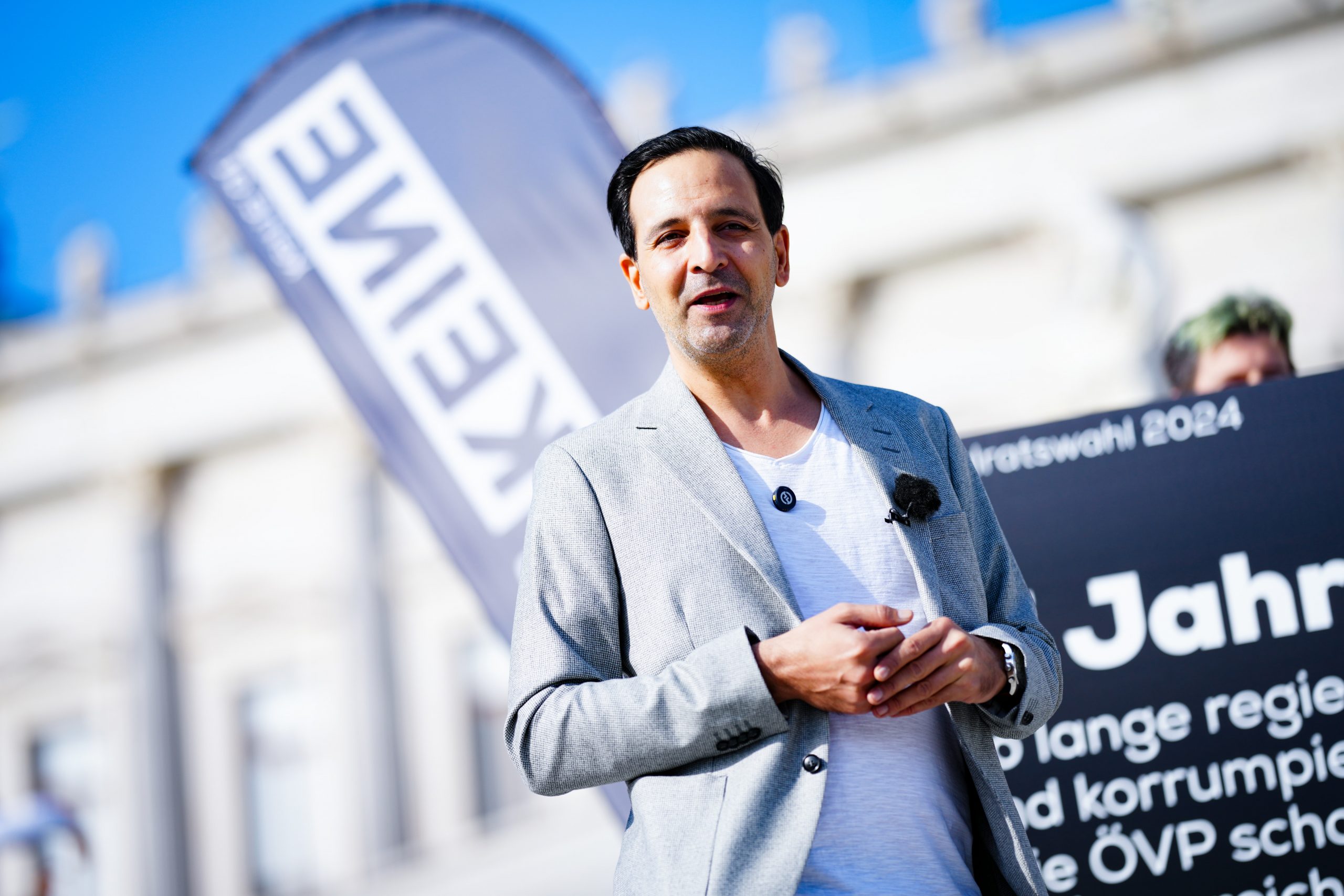 "Wir brauchen endlich eine Opposition, die nicht bedingungslos das Recht auf Profit-Machen bis zum Geht-nicht-mehr für einige wenige über das Wohl von uns allen stellt", forderte Wandel-Chef Mulla und kritisierte bei der Präsentation zunächst die ÖVP. "Seit ich wählen darf, spielt gar keine Rolle, was am Wahltag rauskommt: Die ÖVP sitzt in der Regierung". Seit 37 Jahren würde die Volkspartei das Land "korrumpieren", alle anderen Parlamentsparteien würden weiter mit ihr regieren und damit den "Stillstand" weiterführen wollen.