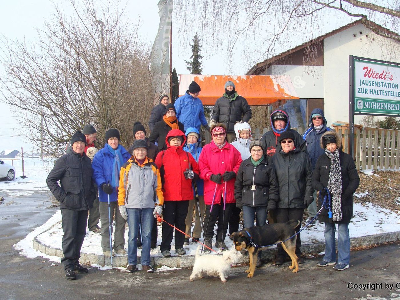 Der erste Dienstag im Monat war wieder Termin für unsere monatliche Wanderung. So trafen sich am 7. Februar, trotz sehr frostigen Temperaturen, 19 Senioren/innen und wanderten entlang der Austraße Richtung Sulz. Über einige Nebenstraßen ging es Richtung Bahnhof Sulz-Röthis. Durch den Wind war es schon sehr kalt und so gingen wir an die Frutz, wo die Sonneneinstrahlung die Temperatur wieder erträglicher machte. Wir marschierten entlang der Frutz bis zum Steg und kamen zurück nach Muntlix. Hier ging es in den Zinken und ein schöner Fußweg an der Frödisch führte uns wieder zurück zum Ausgangspunkt. Nach zwei Stunden Fußmarsch in der Kälte waren wir froh, daß wir im Gasthaus Frödisch einkehren konnten und gut bewirtet wurden.