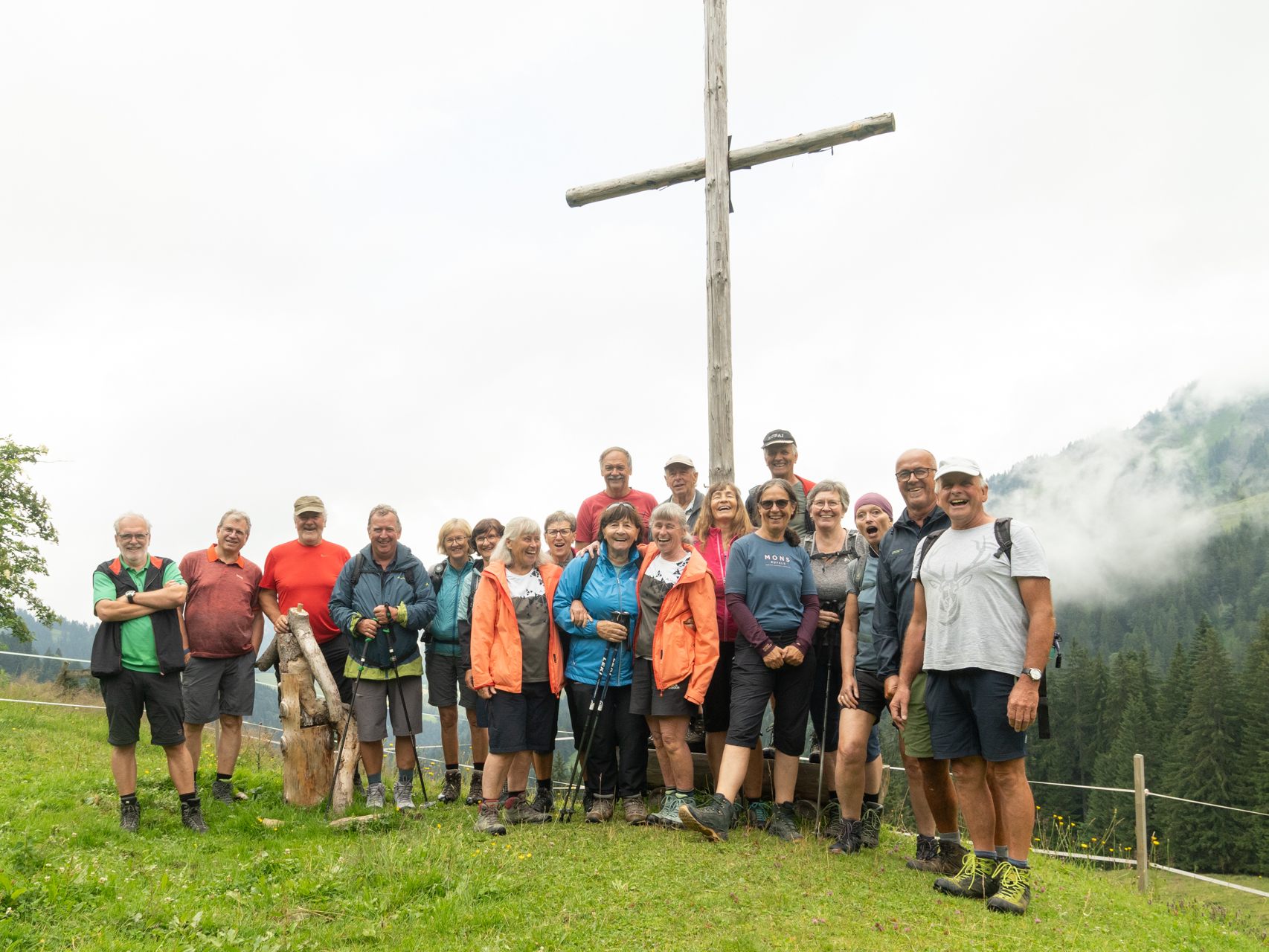 Schon die Fahrt nach Ebnit mit seinen schmalen Straßen war ein Erlebnis. Unsere Wanderung begann beim Gasthaus Heumöser in Richtung Kolping Ferienheime, entlang der Fahrstraße bis zur Bienen-Belegstelle Valors des Bienenzuchtvereins Dornbirn. Dort hielt unser Wanderführer Manfred Leipold, selbst begeisterter Imker, einen interessanten Bienenvortrag. Am Ende des Fahrweges trafen wir auf die Besitzer der Valors-Alpe mit dem PKW voller Musikinstrumente. Da es zu dieser Alpe keine Zufahrtsstraße gibt, muss alles hinaufgetragen werden. Am Sonntag war ein Alp-Gottesdienst geplant mit Musikbegleitung. Nach einem kurzen Gespräch mit den Alpbesitzern packte jeder unserer Wanderer ein Musikutensil und hinauf gings zur Alpe. Oben angekommen wurden alle von den Eigentümern der Alpe mit einem kühlen Getränk belohnt. Dann ging es wieder zurück zum Gasthaus Heumöser. Ein kühles Getränk bevor es nach Höchst in die Alte Schule ging. Dort bekamen wir ein feines Essen mit Getränken serviert. Dafür auch ein herzliches Dankeschön.