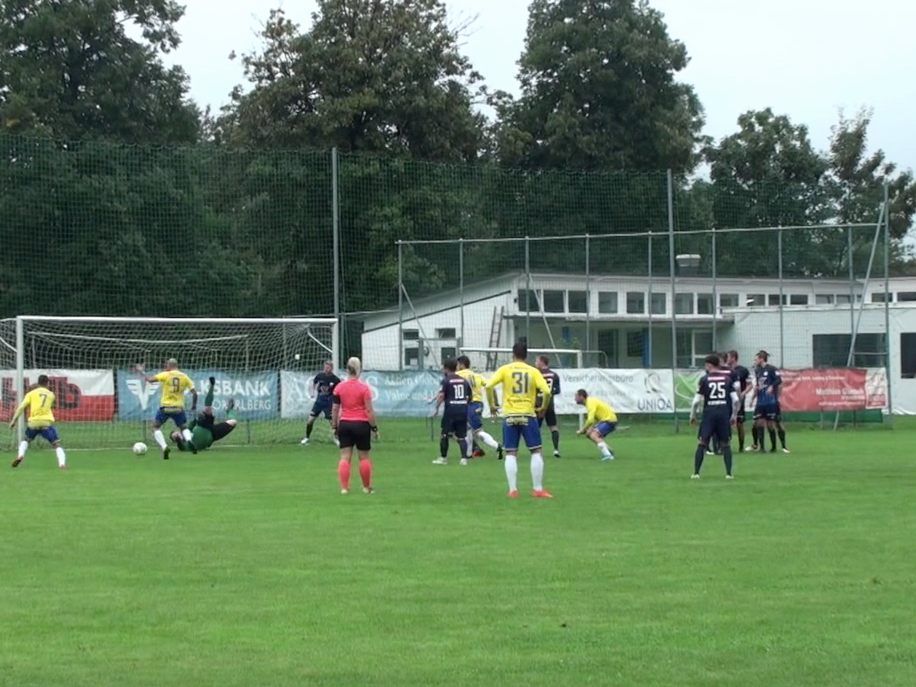 Nico Bechter brachte bei strömenden Regen und einer Wasserschlacht den SK Meiningen im Spiel der Landesliga in Kennelbach in Front (36.). Lukas Grabher machte den Rückstand mit einem raffinierten Eckball wett (85.). Meiningen traf zweimal auf Aluminium. Mathias Pointner traf aus 2 Metern nur den Pfosten