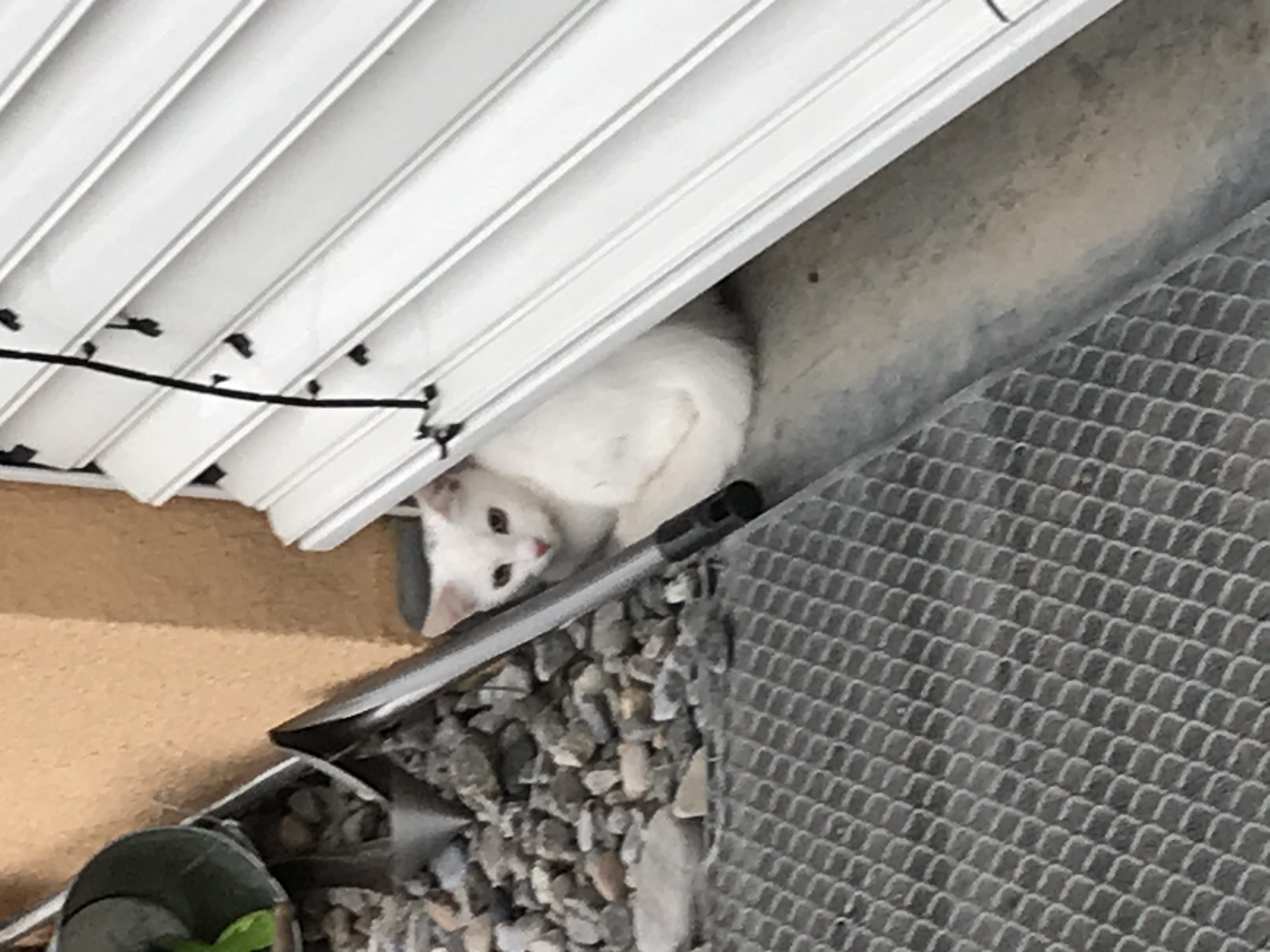 Heute, am 24.12. ist diese junge weiße verängstigte Katze bei uns aufgetaucht.