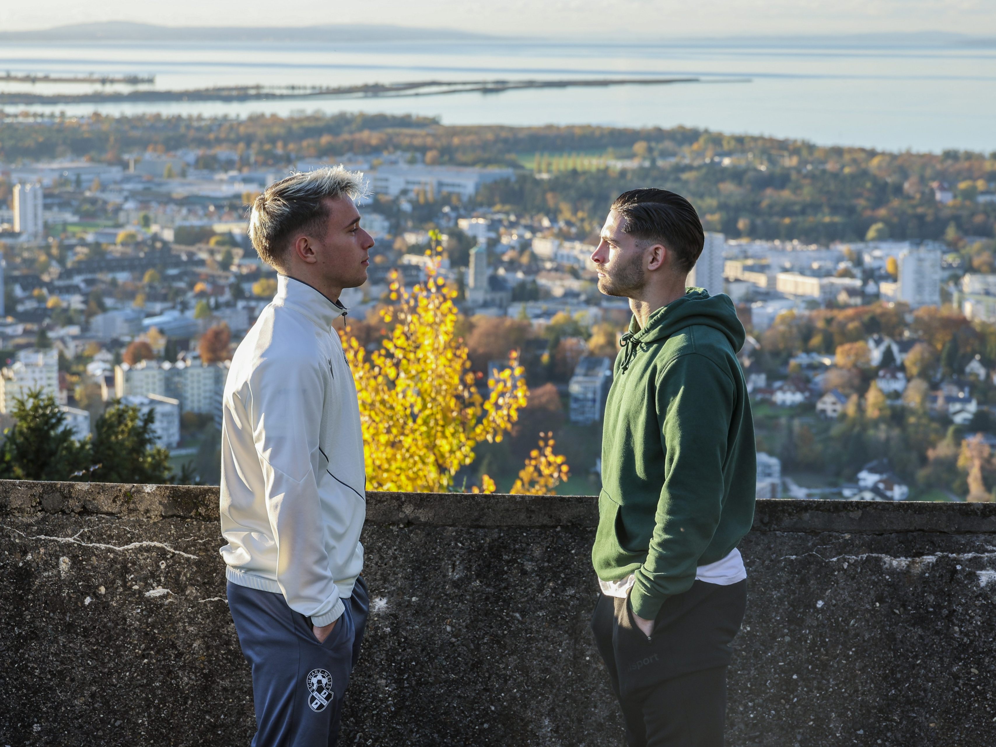 Der Ort für das Treffen mit Mario Vucenovic und Raul Marte könnte symbolträchtiger nicht sein. Hoch oben auf dem Gebhardsberg blicken die beiden hinunter auf Bregenz und Lustenau.