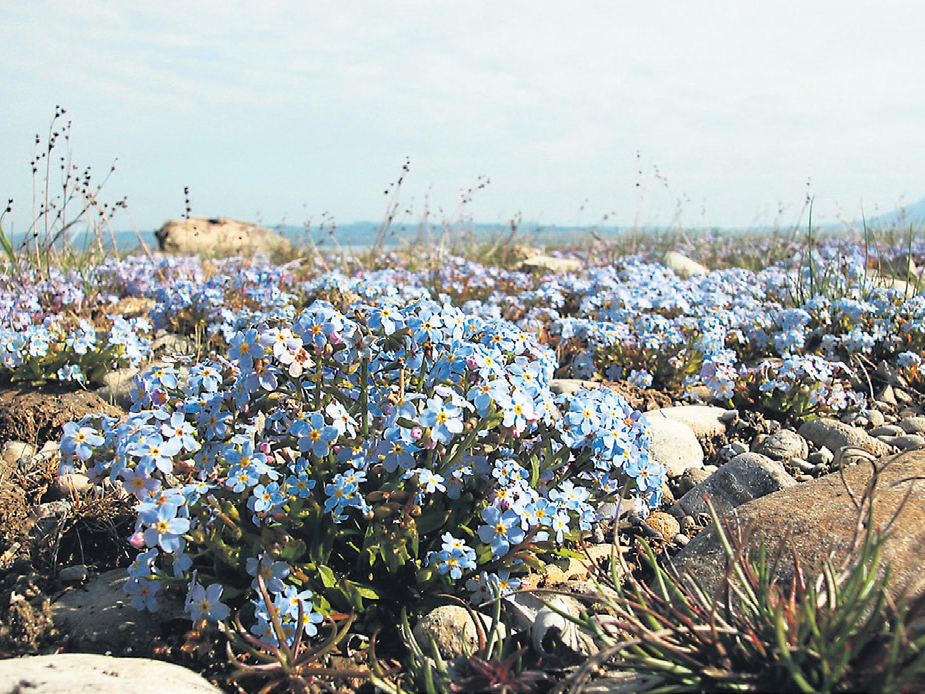 Es ist ein wunderschönes Schauspiel, wenn die einzigartigen Bodensee-Vergissmeinnicht im Frühjahr zu Tausenden bzw. gar zu Hunderttausenden das Bodenseeufer mit einem blauen Schimmer überziehen. Die zierliche Pflanze zählt zu den beeindruckendsten Bewohnerinnen des Natura- 2000-Gebiets Mehrerauer Seeufer – und kommt, wie der Name erwarten lässt, weltweit nur am Bodensee vor. „Das Bodensee-Vergissmeinnicht findet derzeit optimale Bedingungen vor, da der See so sauber wie selten zuvor ist“, erklärt Gebietsverantwortlicher Gerold Ender. Und trotzdem schwankt das Vorkommen der blauen Besonderheit von Jahr zu Jahr – hängt ihre Verbreitung doch maßgeblich mit dem Wasserstand zusammen. Überschwemmungen des Uferbereichs, wie sie in den Sommermonaten häufig vorkommen, sind notwendig, sodass das Bodensee-Vergissmeinnicht nicht von Landpflanzen verdrängt wird. Zugleich hindern lange Überschwemmungsphasen sein Wachstum. „Die besiedelten Flächen halten sich aber weitgehend konstant, das Bodensee- Vergissmeinnicht kommt heute de facto am ganzen Mehrerauer Bodenseeufer vor“, freut sich Ender. Eine weitere grüne Rarität bereitet da mehr Kopfzerbrechen: Die ebenfalls nur am Bodensee auffindbare Strandschmiele zählt zu einer der seltensten Pflanzen Österreichs.