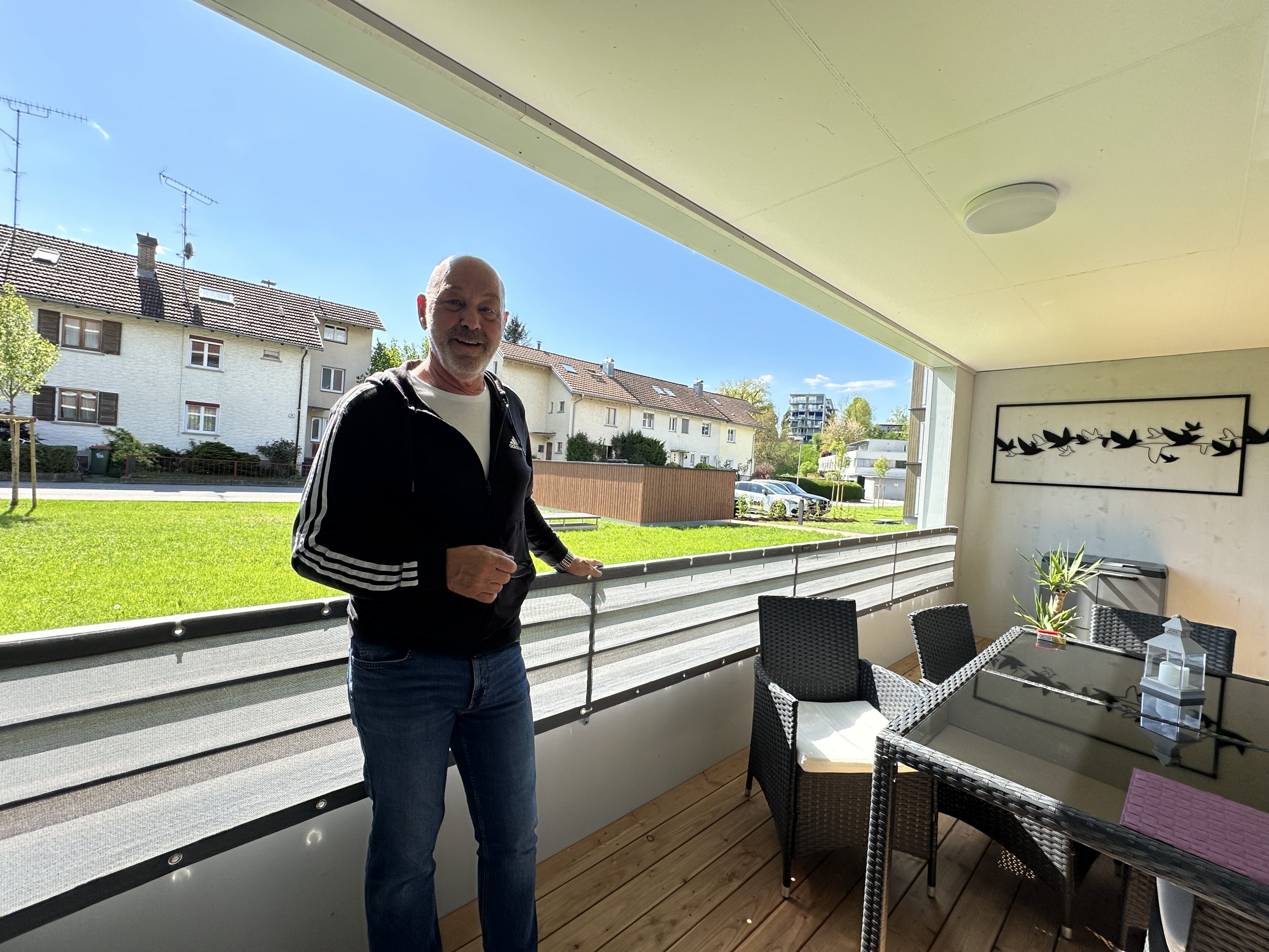 Er lobt die neue Wohnung für ihre Helligkeit, den großen Balkon, die Raumeinteilung und die Fußbodenheizung. Der sechs Meter lange Balkon hat es ihm angetan: "Da kann man sich wirklich aufhalten. Da kann man auch am Abend mit Kollegen zusammensitzen." Auch die Mitgestaltung im Vorfeld sei vorbildlich gewesen: "Wir hatten alle Möglichkeiten – Küchenplanung, Möbelmaße, Pläne. Besser kann es nicht gehen." Nur ein, zwei frühere Nachbarn vermisse er. Doch diese hätten noch die Möglichkeit, ebenfalls eine neue Wohnung zu bekommen.