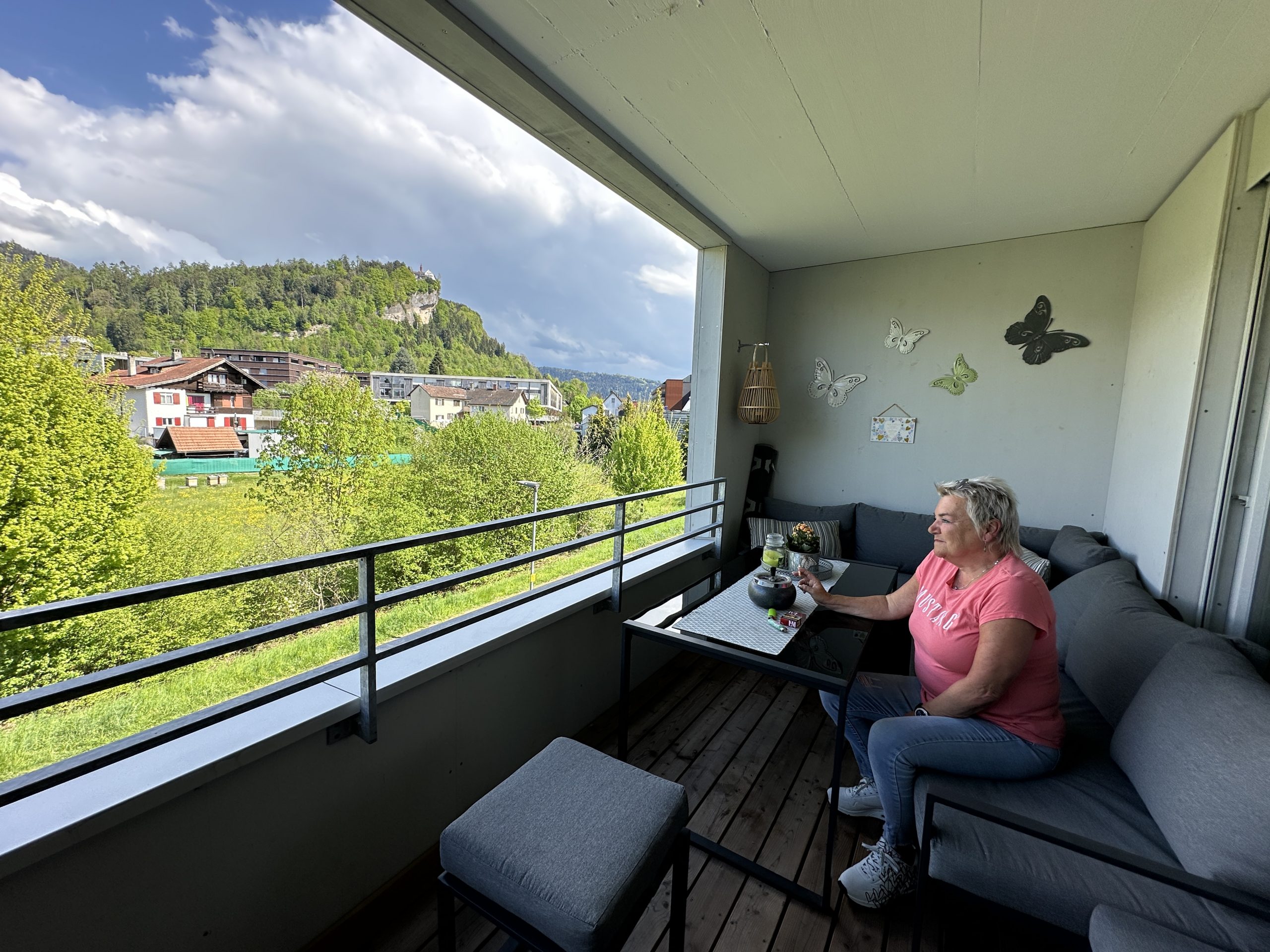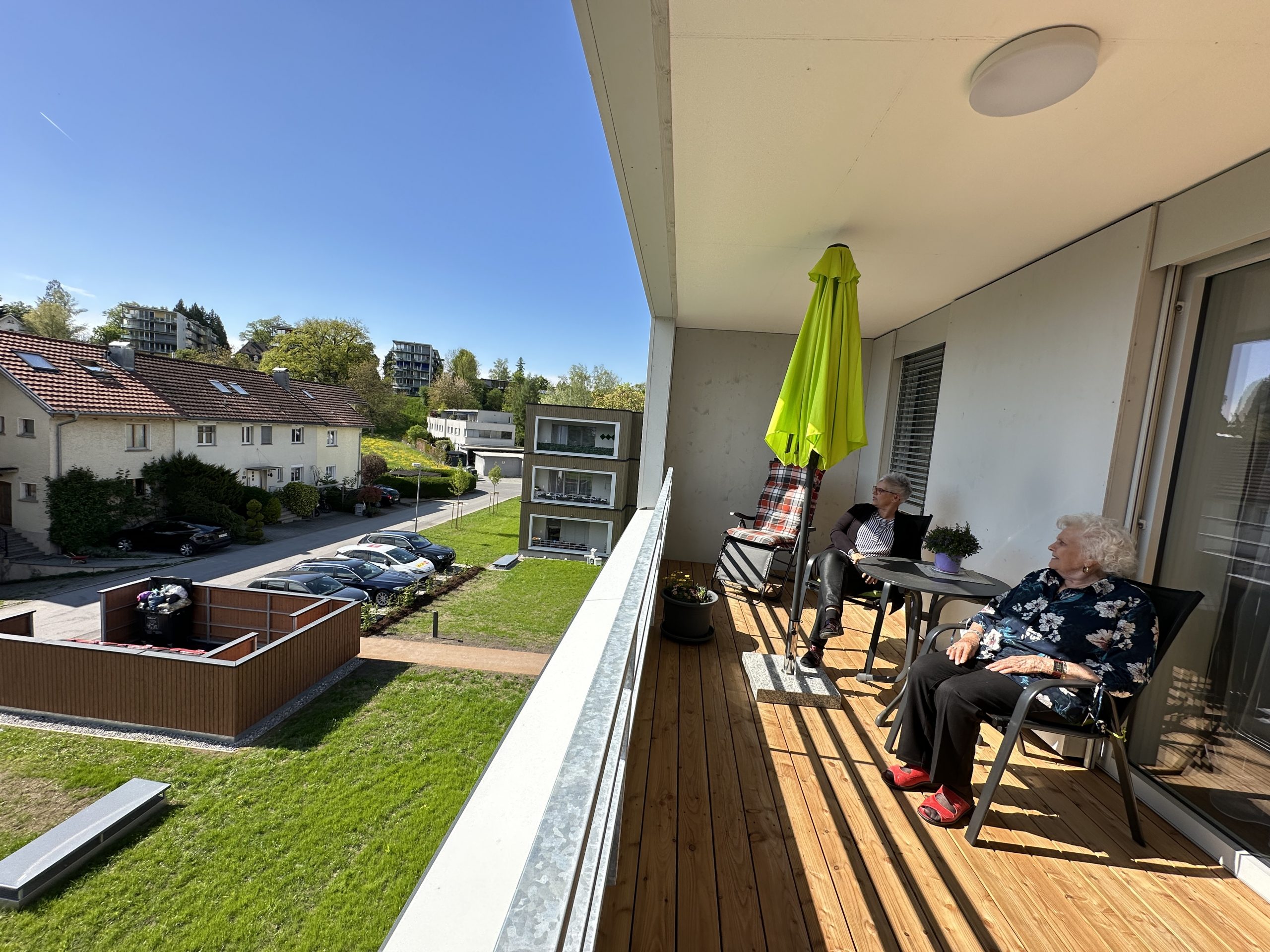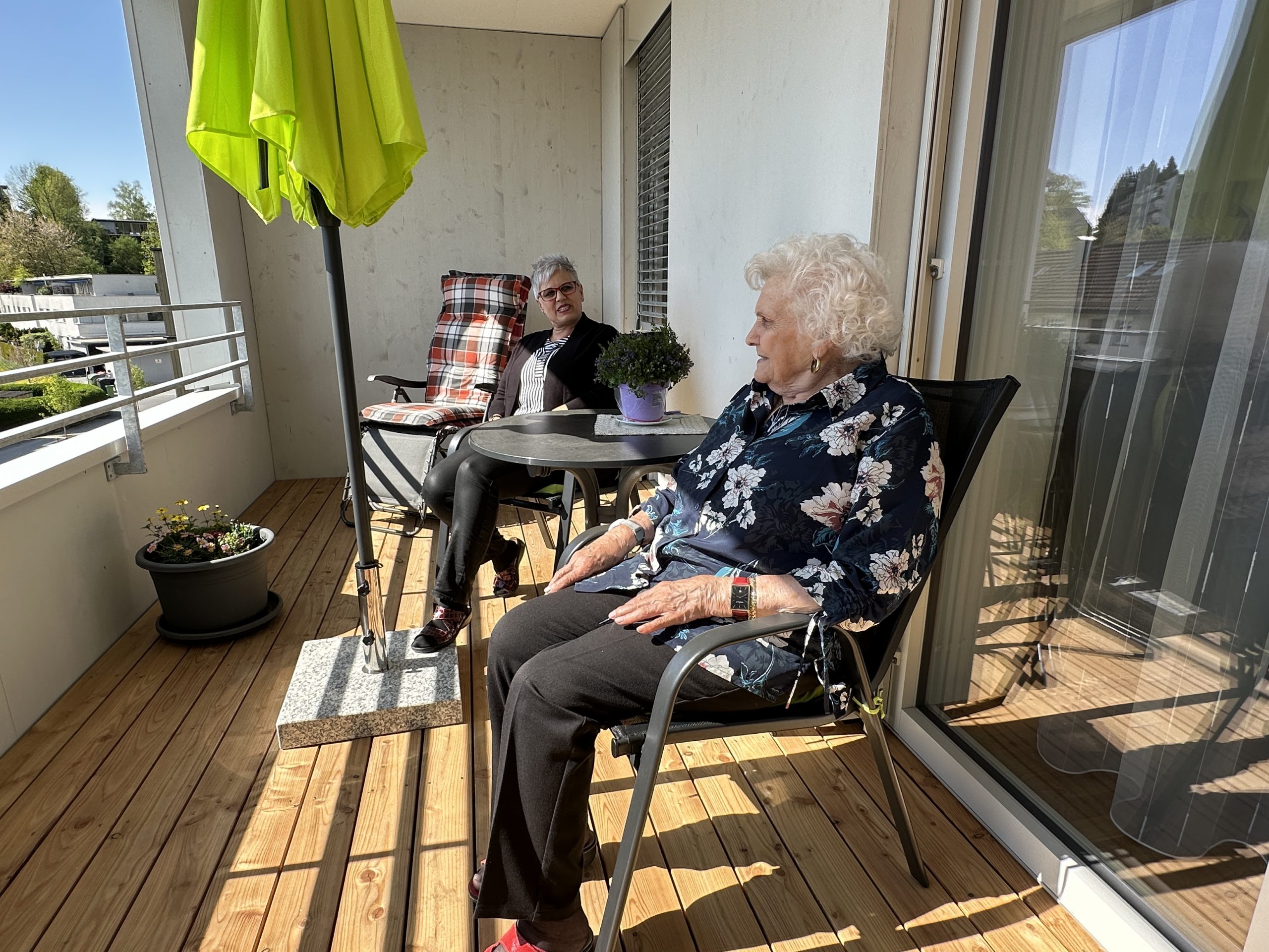 Besonders die Helligkeit, der Balkon und der barrierefreie Zugang mit Lift gefallen ihr. "Sie ist klein, aber groß für mich", meint Liane. Zudem kommt der "Essentisch" vom mobilen Hilfsdienst regelmäßig bei ihr vorbei. "Der Balkon ist Gold wert. Vier-, fünfmal am Tag sitze ich draußen." Die Umgebung empfindet sie als ruhig und angenehm.