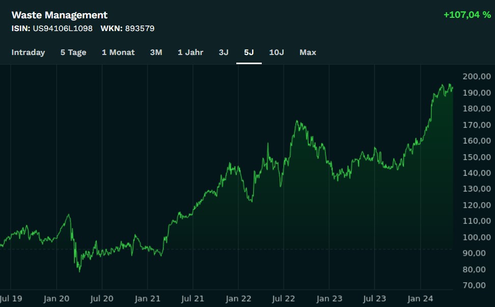 Als größtes privates Abfallwirtschaftsunternehmen in den USA hält Waste Management einen bedeutenden Anteil im Portfolio.