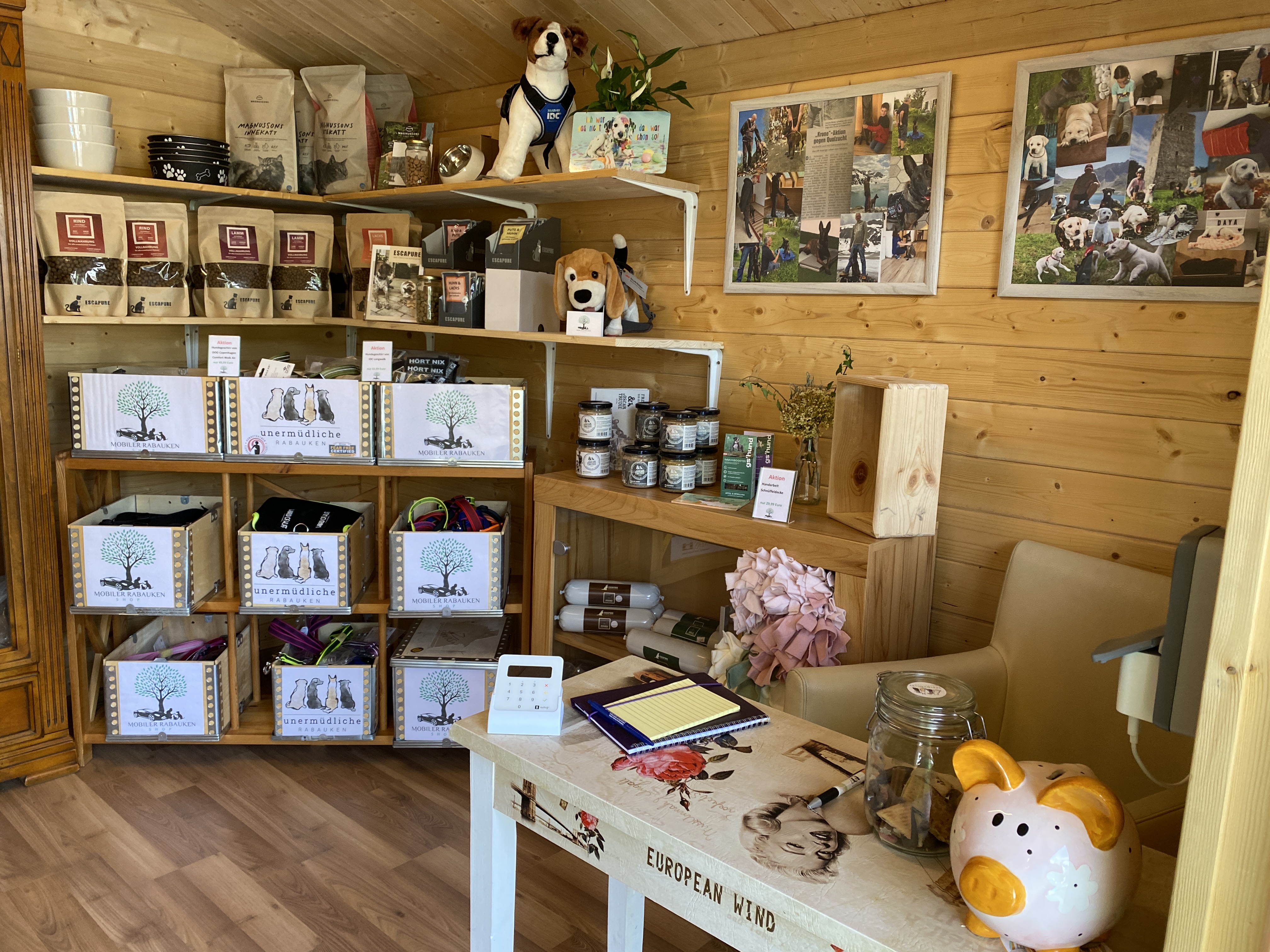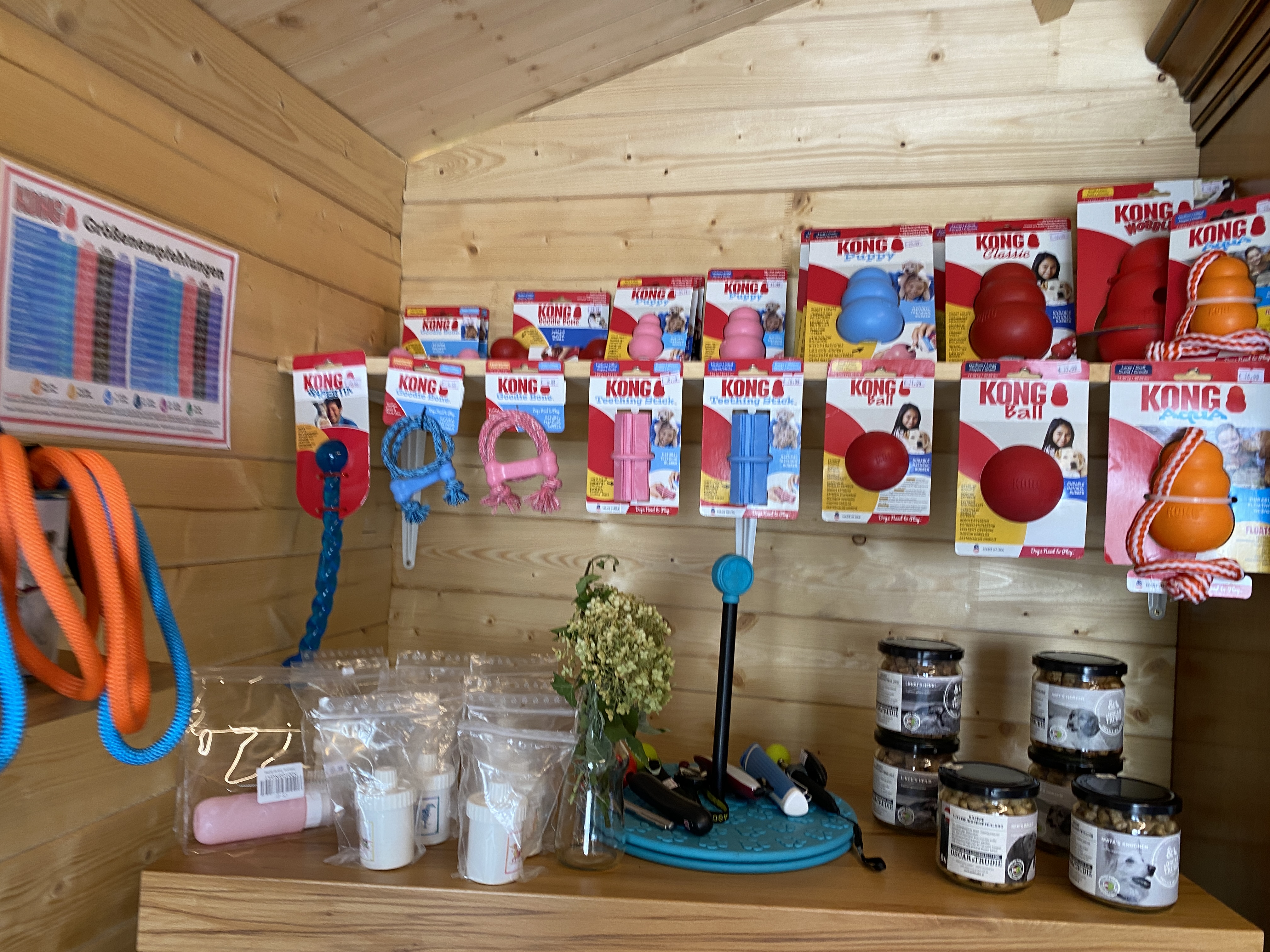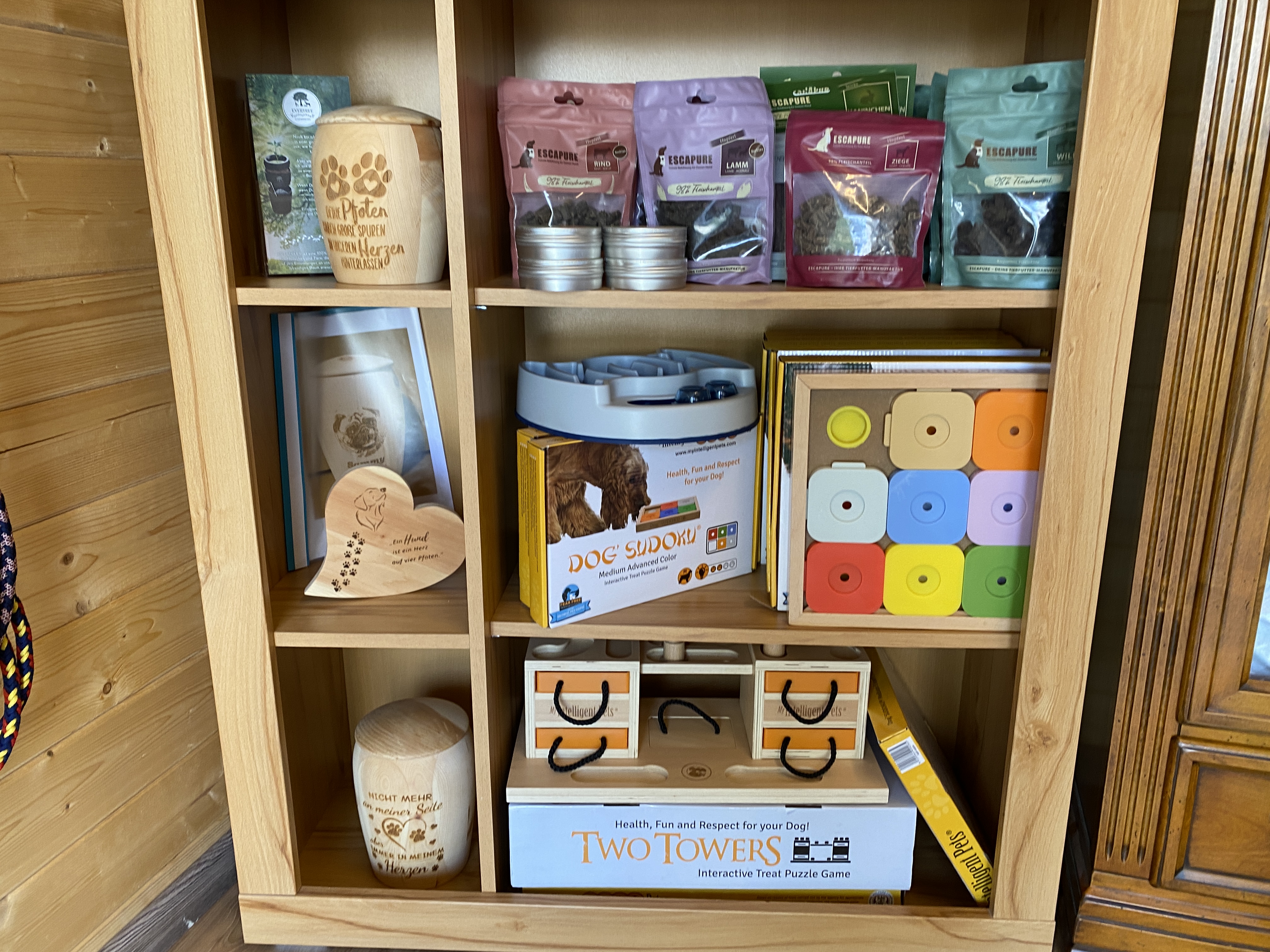 Das Sortiment kann durch den festen Standort größer präsentiert werden als vorher, wie sie erklärt. Bislang war die Unternehmerin mit dem Kleinbus und einem großen Koffer voller Produkte unterwegs. Dieser Koffer sei nun langsam zu klein geworden, meint Hirsch und lacht. Auch kamen immer mehr Kunden dazu. Von Leinen über spezielles Futter für Katzen und Hunde, über Leckerlis und Spielzeug bis hin zu Tierurnen aus Holz bietet sie in ihrem kleinen feinen Geschäft alles an, was Hund und Katze brauchen. Entstanden ist somit eine Art Tante-Emma-Laden für Tierbedarf. Die Lage direkt vor ihrer Haustür macht sie flexibler. "Du kannst während der Öffnungszeiten jederzeit vorbeikommen. Sollte ich nicht heraußen sein, klingelst du kurz", erklärt Sabine Hirsch das System.